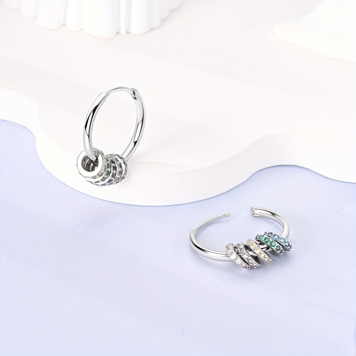 These stunning hoop earrings are made from 925 silver and feature colorful zirconia stones. They are hypoallergenic and perfect for women with sensitive ears.
