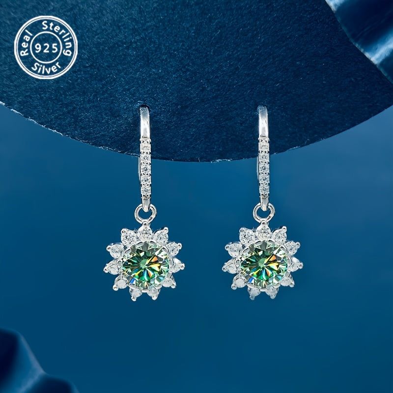 These elegant 925 sterling silver dangle earrings feature 1 carat moissanite stones. Perfect for all seasons and occasions, they are ideal for weddings, engagements, parties, and gifts.