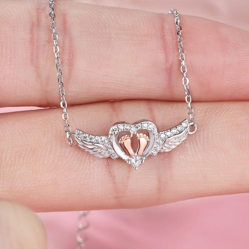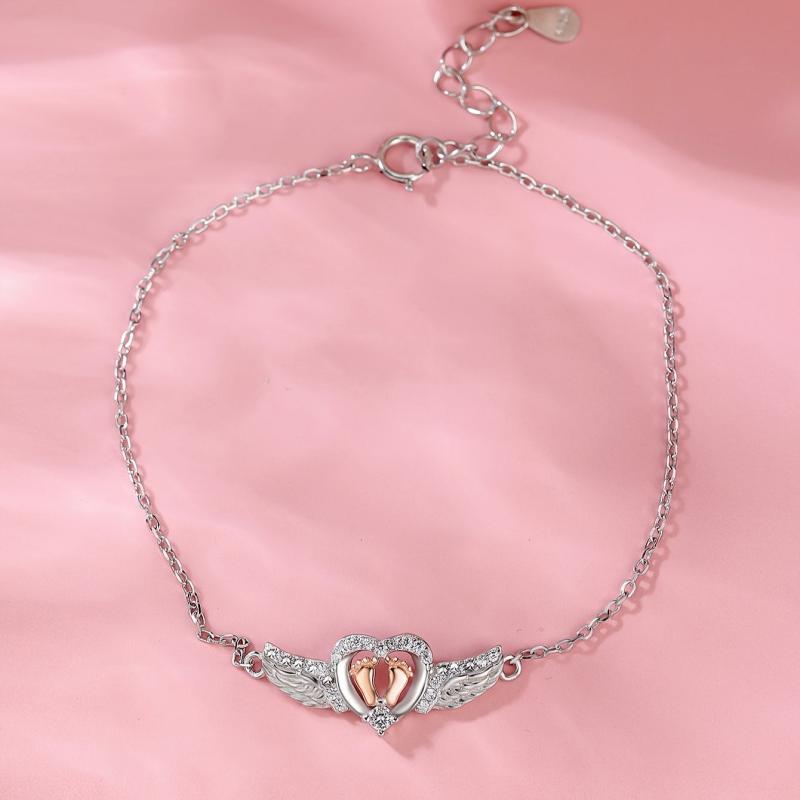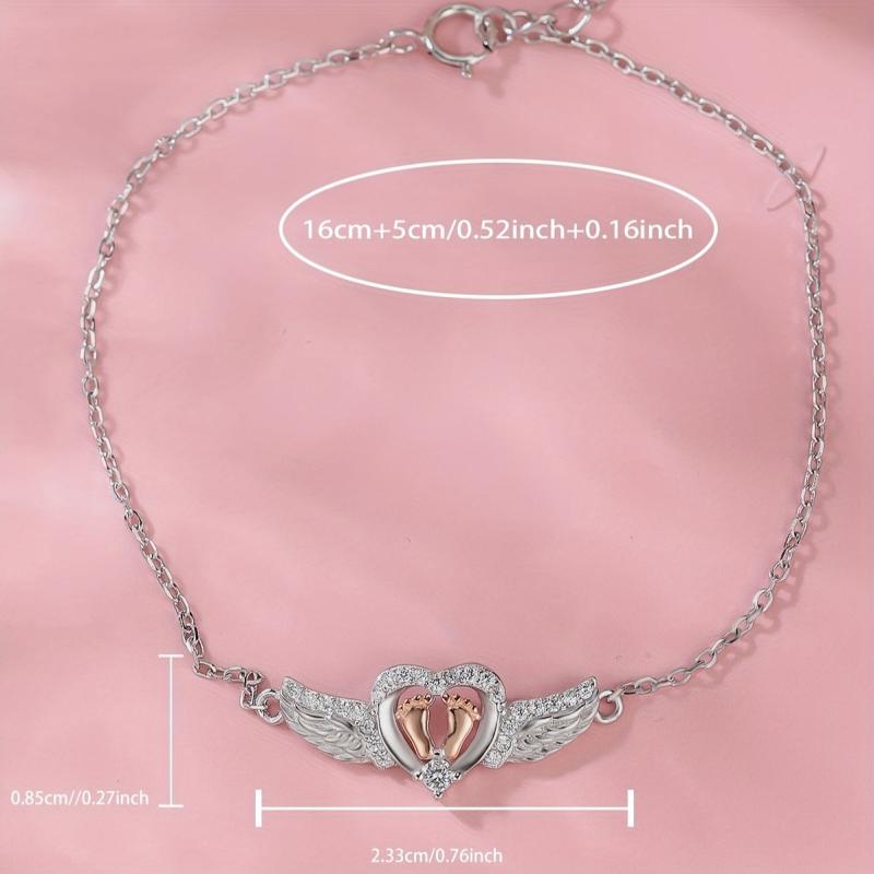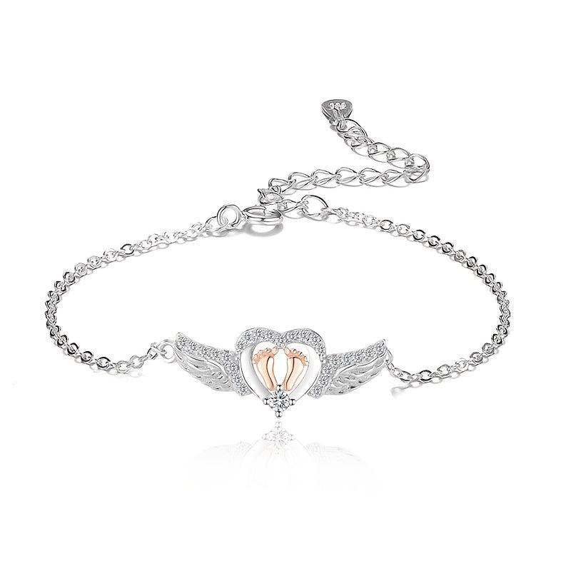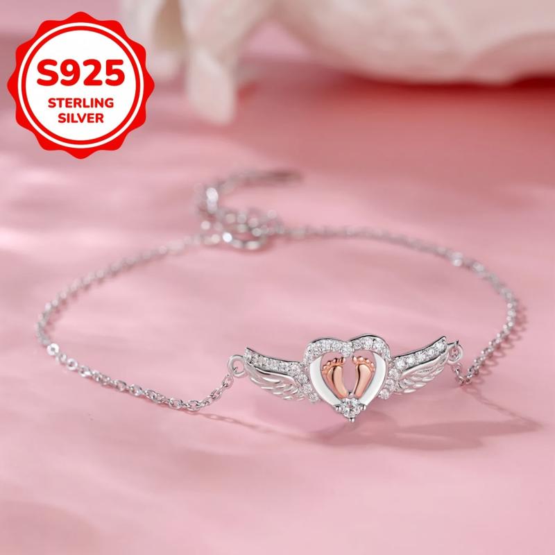 925 Silver 'Mommy of an Angel' Bracelet w/ Kids Feet & Heart Cubic Zirconia