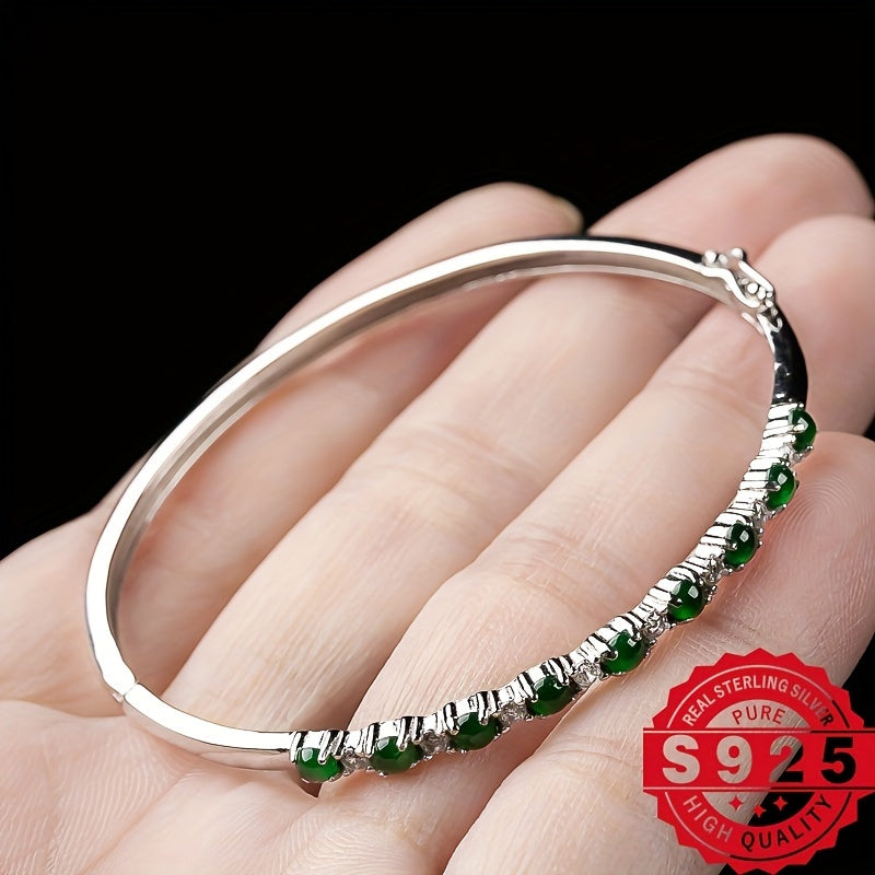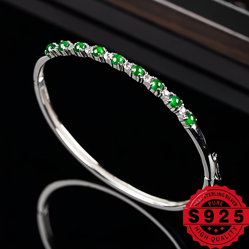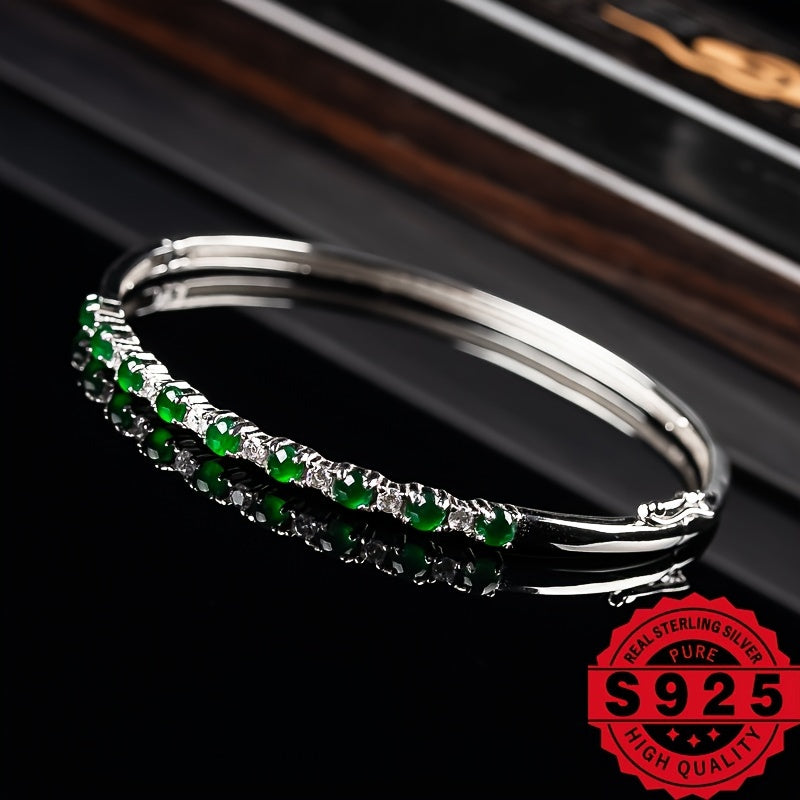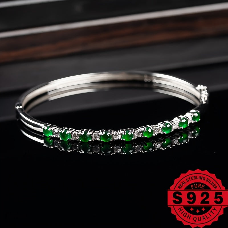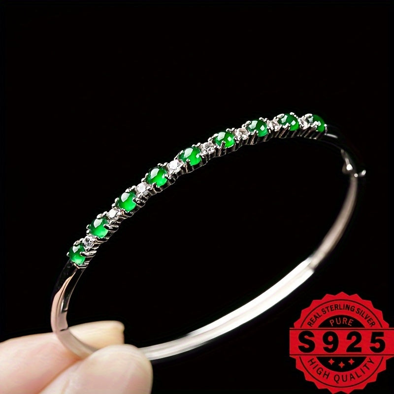 925 Silver Natural Stone Ice Full Green Ladies Bracelet