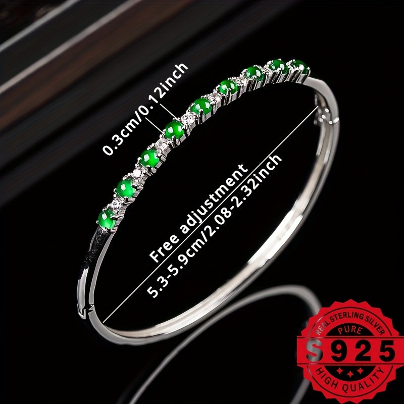 This bracelet is a beautiful piece of jewelry for ladies featuring natural stone in ice full green color. It is made of 925 silver and can be freely adjusted for a perfect fit. Create your own unique DIY bracelet with this exquisite piece.