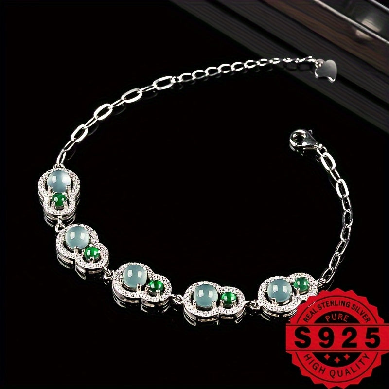 This 925 silver bracelet features natural stone A ice two design that allows ladies to freely adjust. Create your own unique natural stone jewelry with this DIY bracelet.