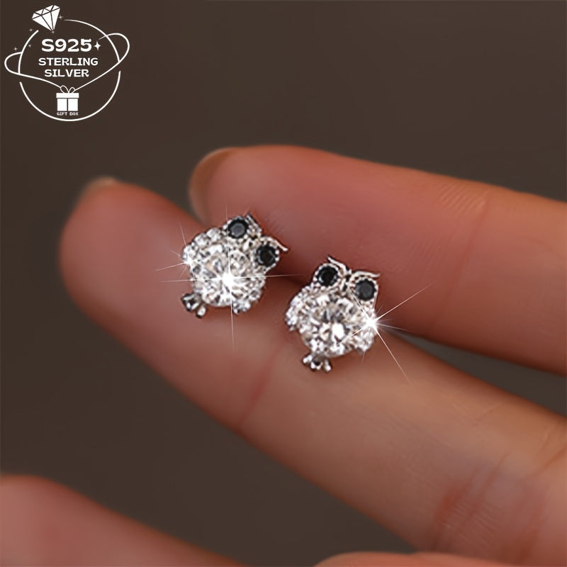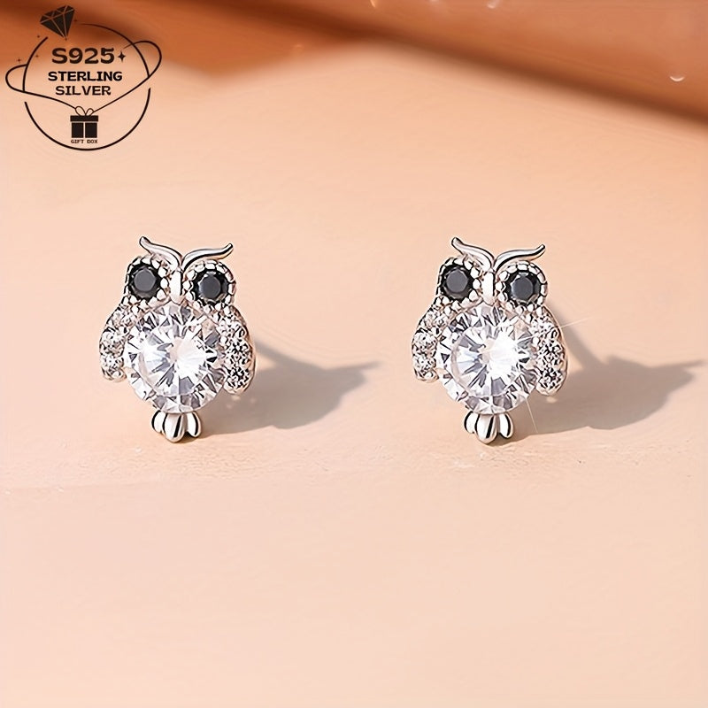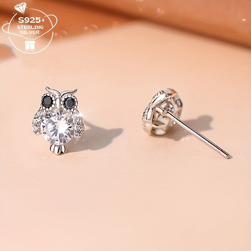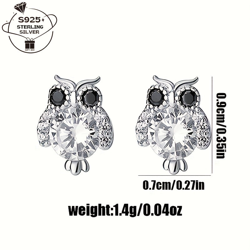 These owl stud earrings are crafted from 925 sterling silver and feature synthetic zirconia. Perfect for daily wear or gifting, this versatile jewelry item is suitable for any season.
