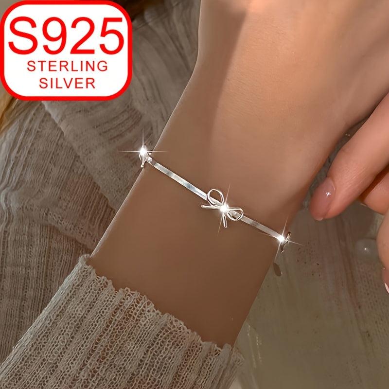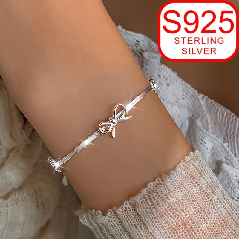 This 925 silver snake bone bracelet is a low-allergy piece featuring a bow ballet style design. A perfect gift for Mother's Christmas or any special occasion.