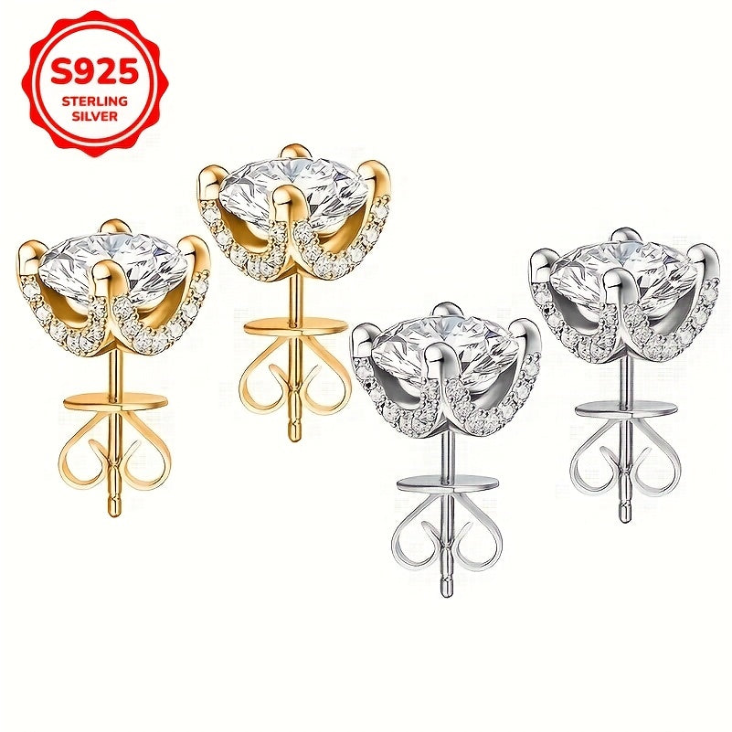 925 Silver Stud Earrings with Zirconia - Hypoallergenic