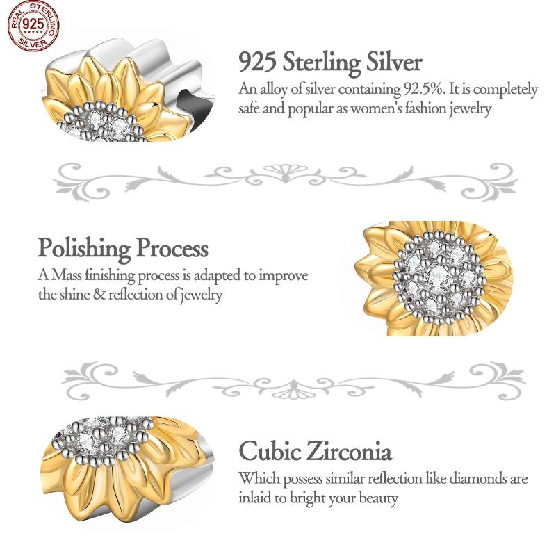 Add a touch of nature with this sterling silver sunflower pendant bracelet, a perfect gift for birthdays. Ideal for necklace and bracelet making.