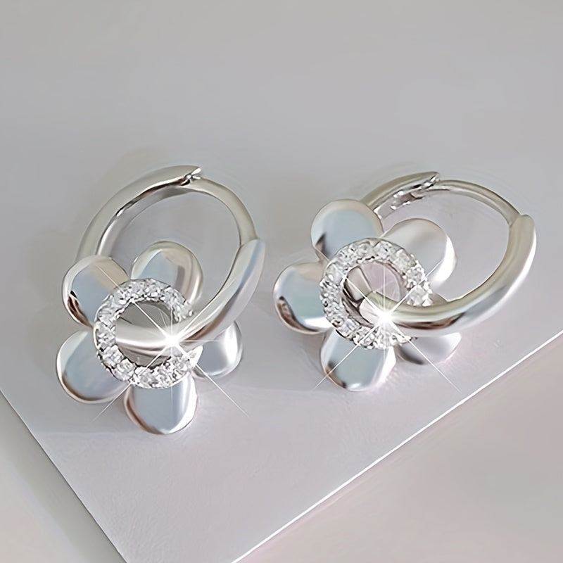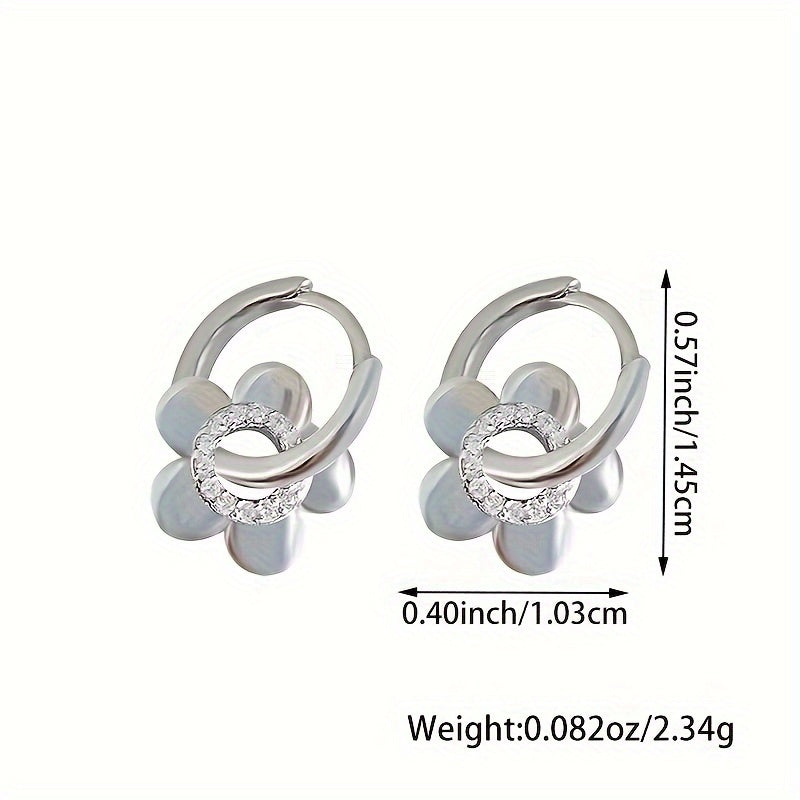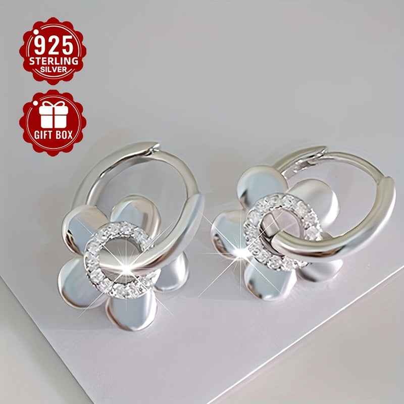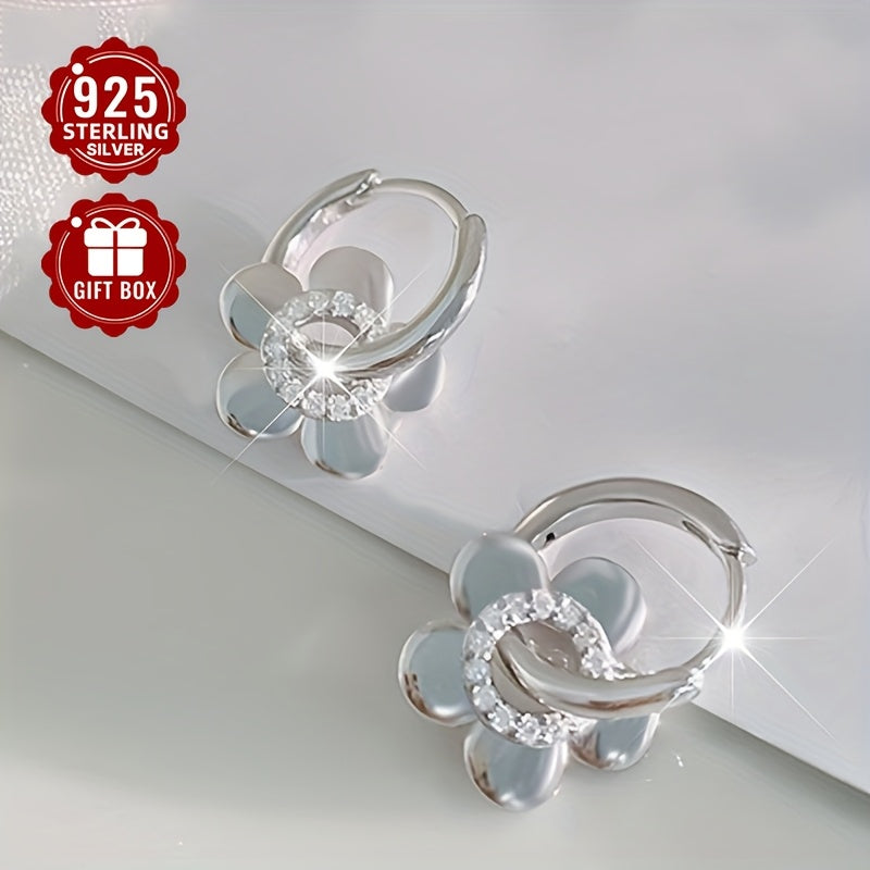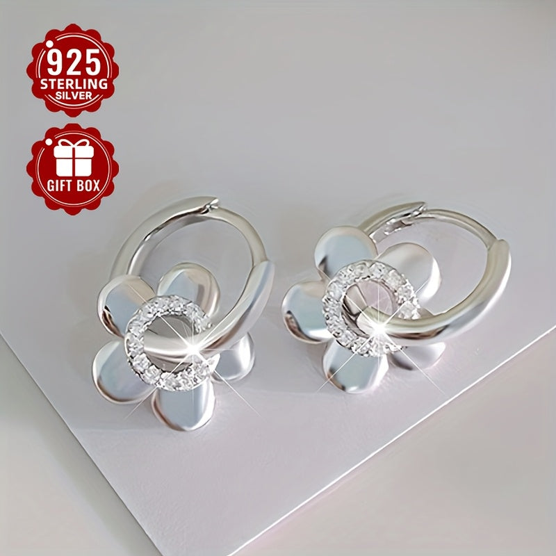 This set includes 2 pairs of sweet flower inlay earrings made of 925 pure silver with synthetic zirconia gems. Perfect for daily wear or travel activities.