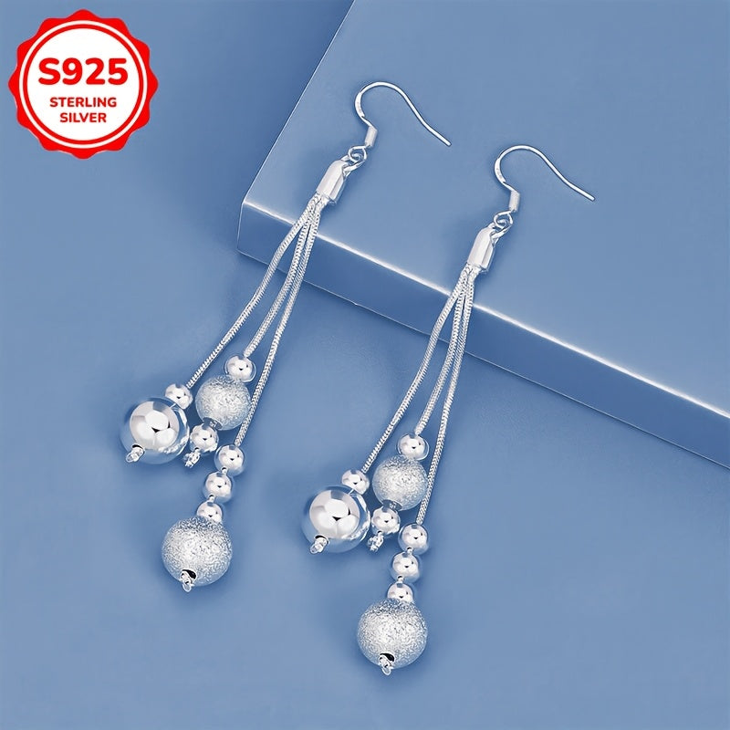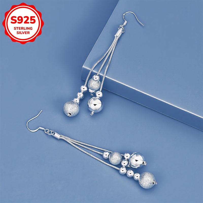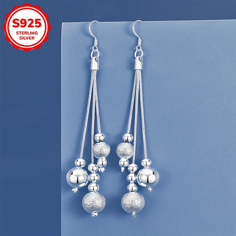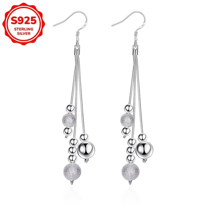 These 925 silver tassel earrings are versatile and stylish, suitable for daily wear or special occasions. They are made with high-quality material and feature a sexy matte bead dangle design.