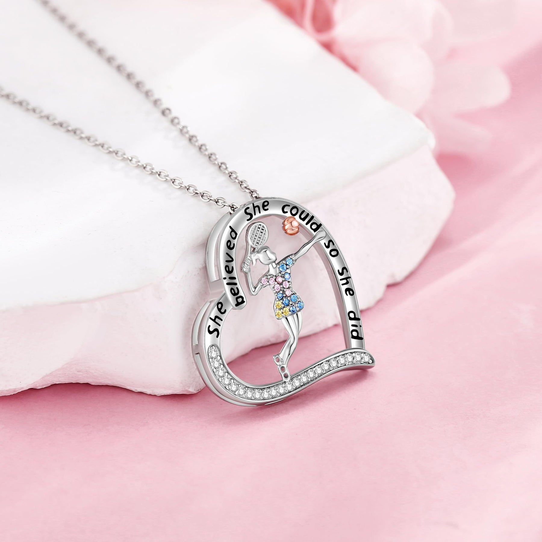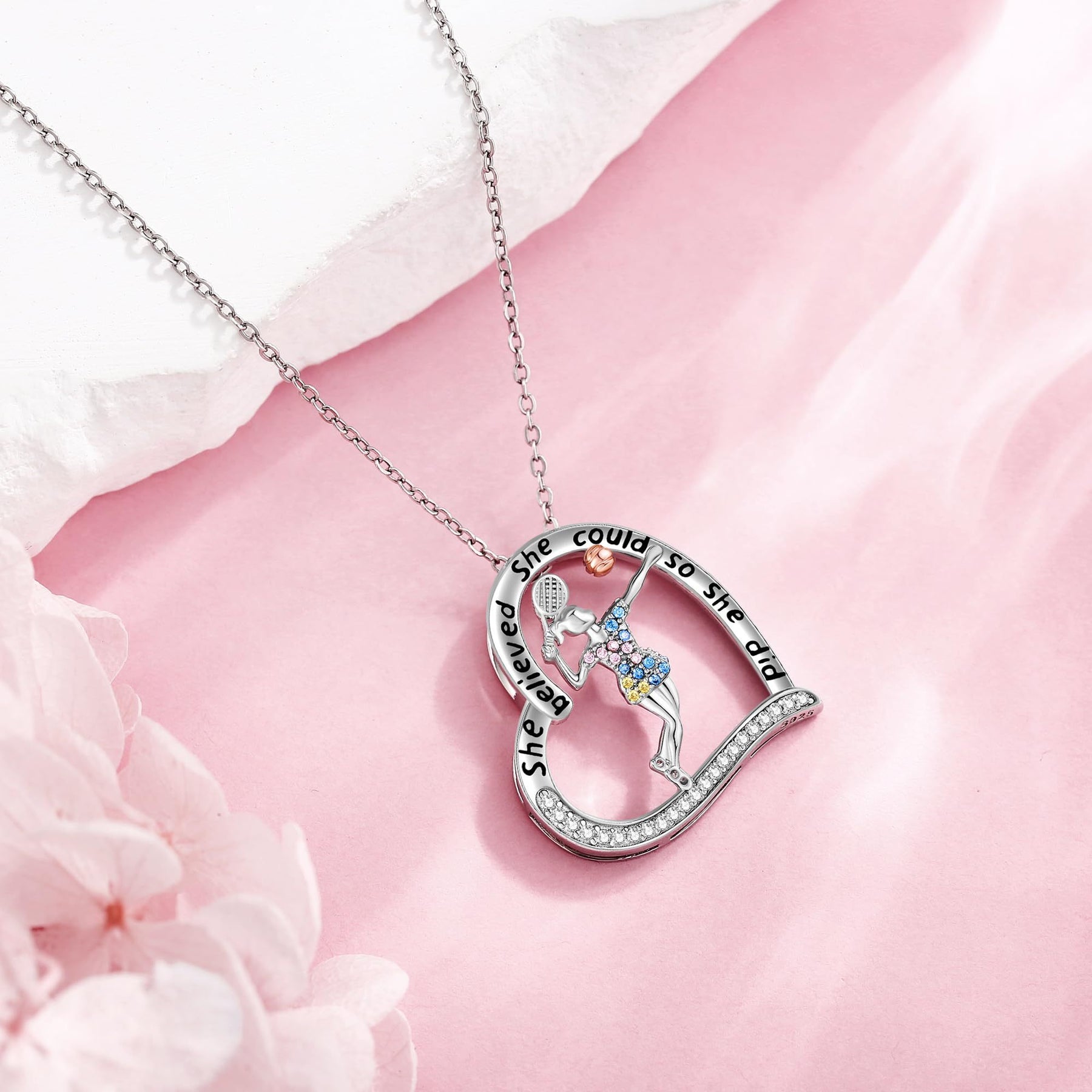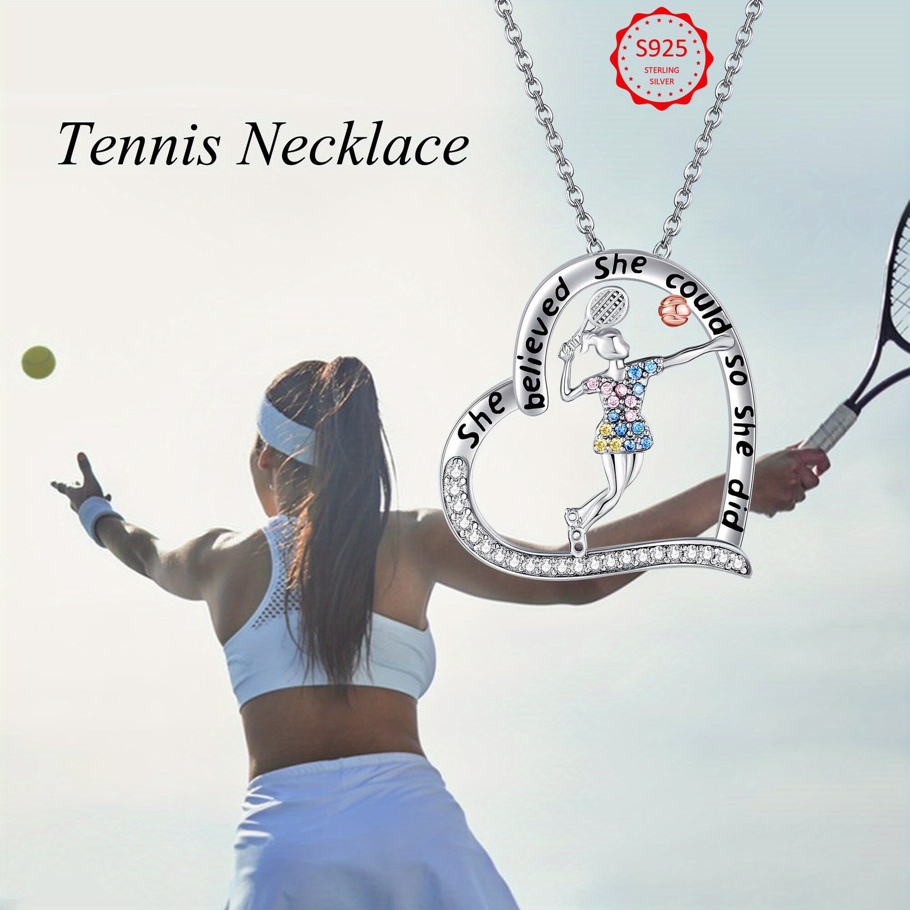 Elevate your style with this tennis-themed necklace crafted in 925 sterling silver. Perfect for tennis enthusiasts.