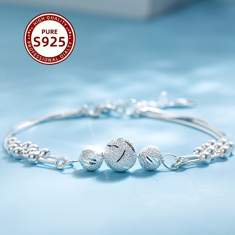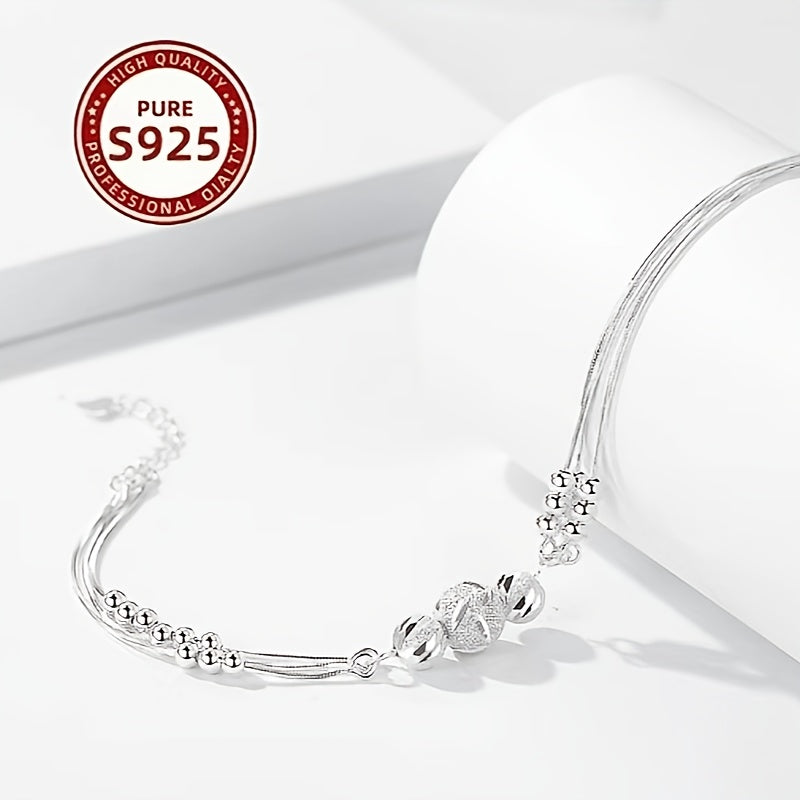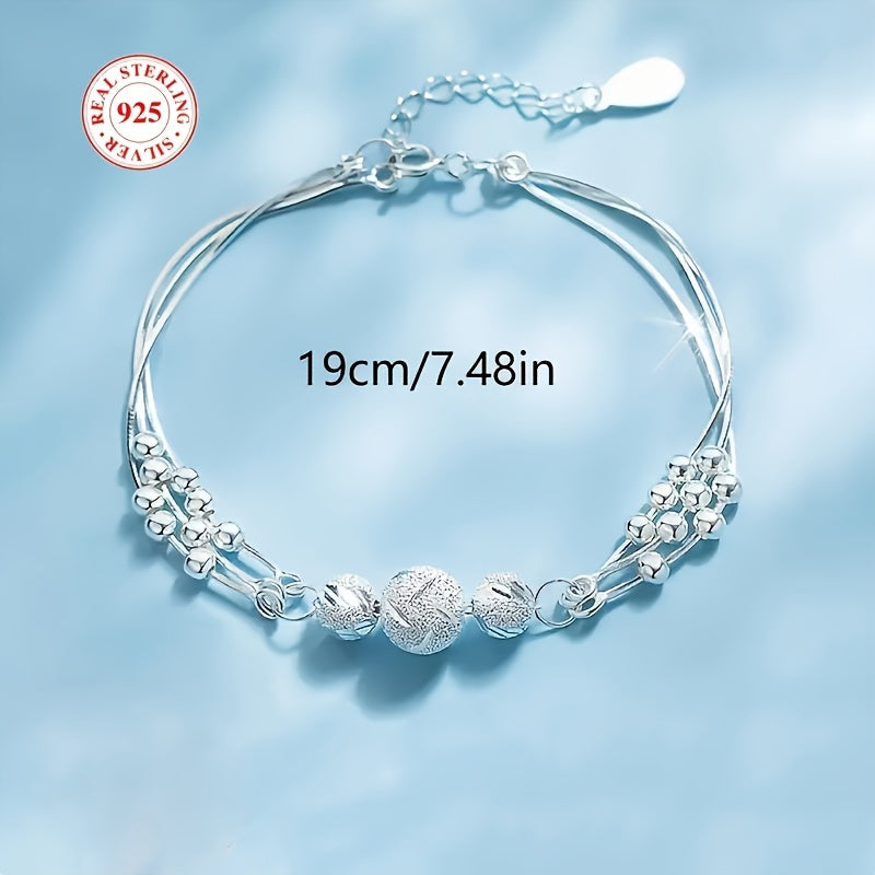 This 925 silver bracelet is a perfect gift for your girlfriend or friends. It features a lucky bead design and a stylish layered look.