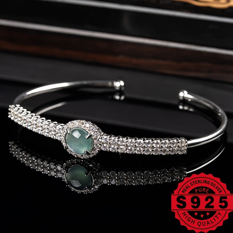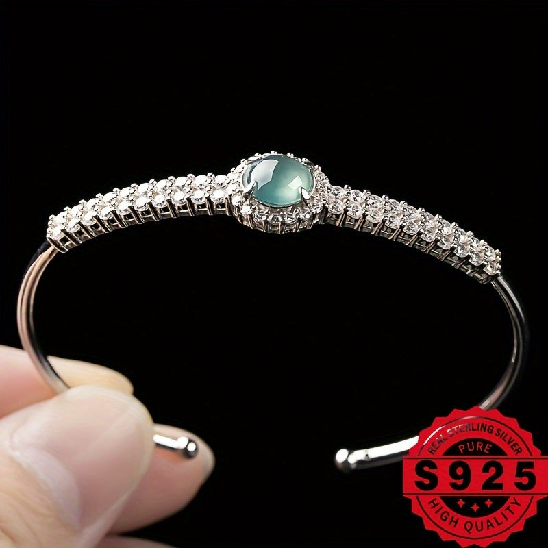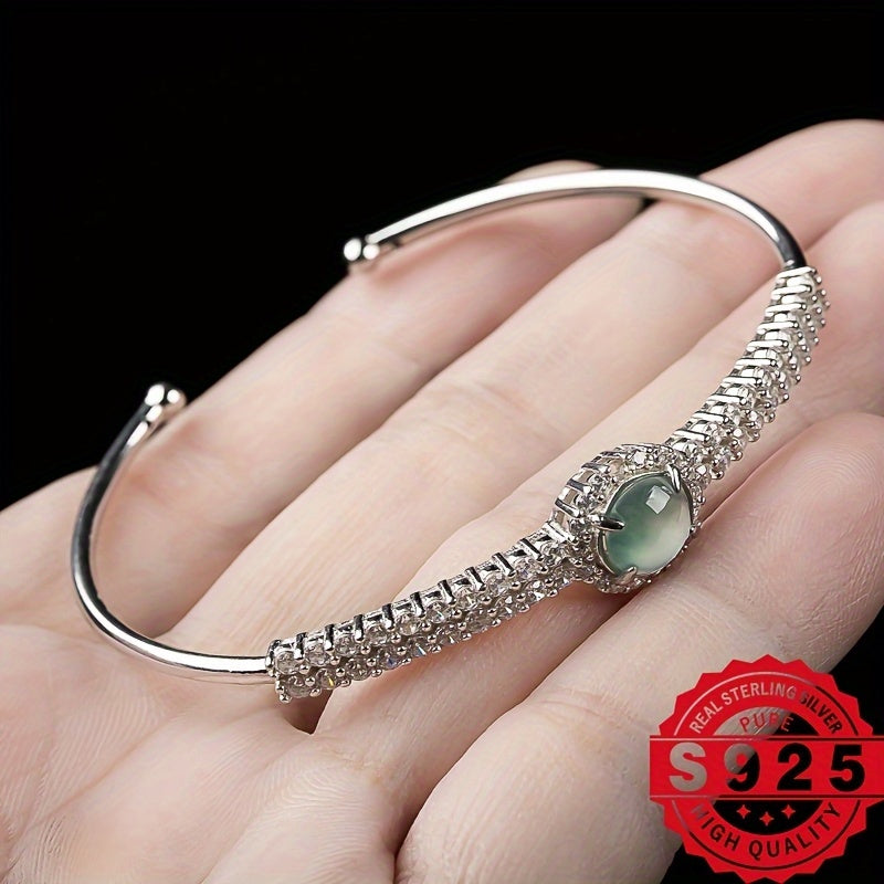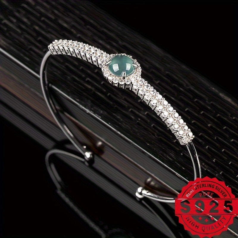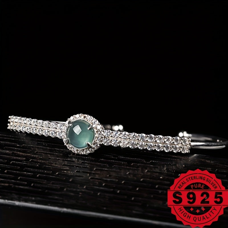 Elegant and stylish 925 sterling silver bracelet featuring natural stone with adjustable fit. This bracelet is perfect for any occasion and adds a touch of sophistication to your outfit.