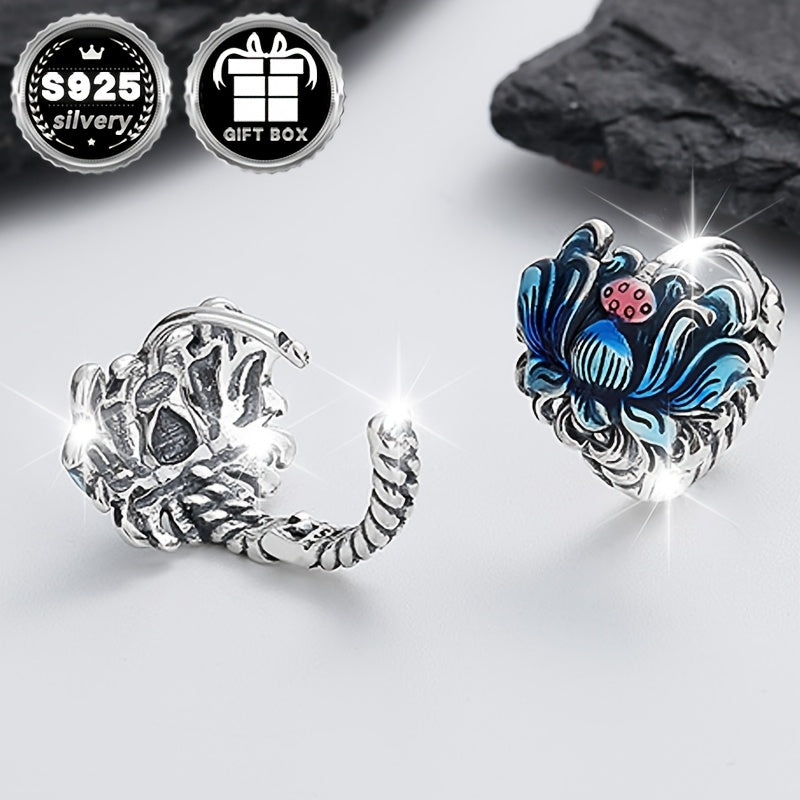 Elegant circular earrings crafted from 925 sterling silver with a creative resin lotus flower design, adding a touch of ethnic style to your look.