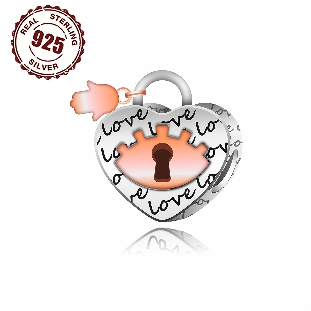 925 Sterling Silver Devil'S Eye Love Lock Charm Bead DIY Jewelry