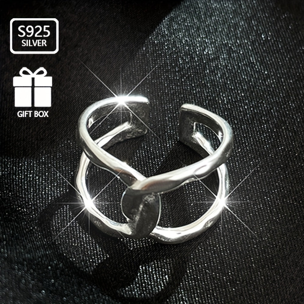 Elegant and stylish 925 sterling silver open ring with a retro design. Perfect for parties and special occasions. Ideal as a surprise small gift.