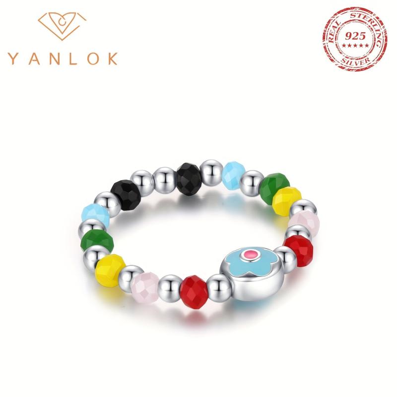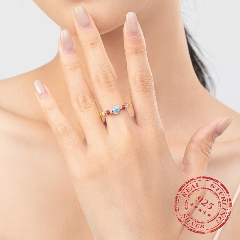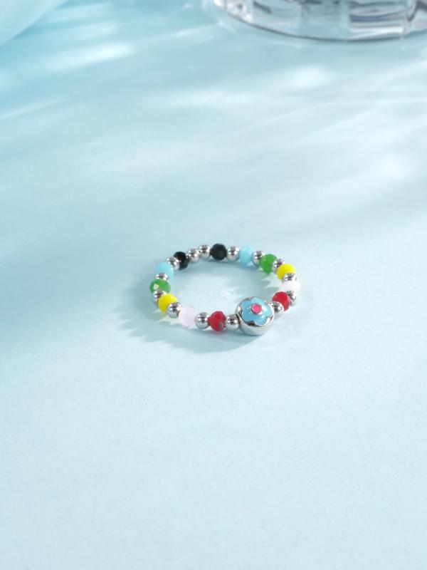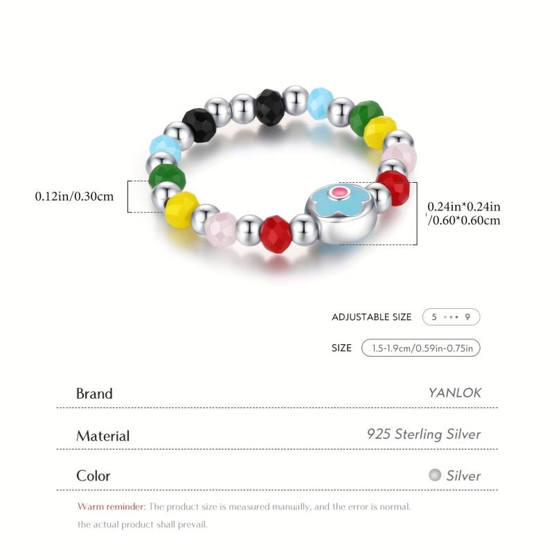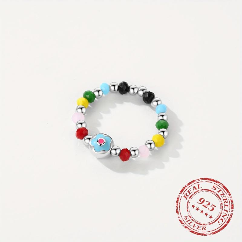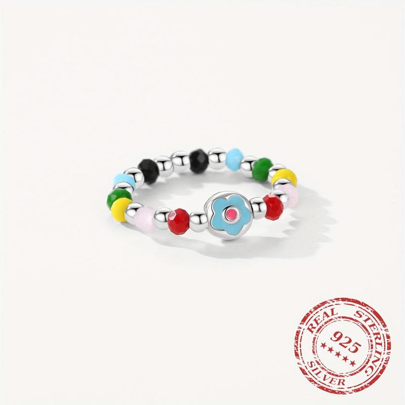 This adjustable ring features colorful crystal beads and a beautiful enamel flower design. Made from 925 sterling silver, it's a charming accessory for any outfit.