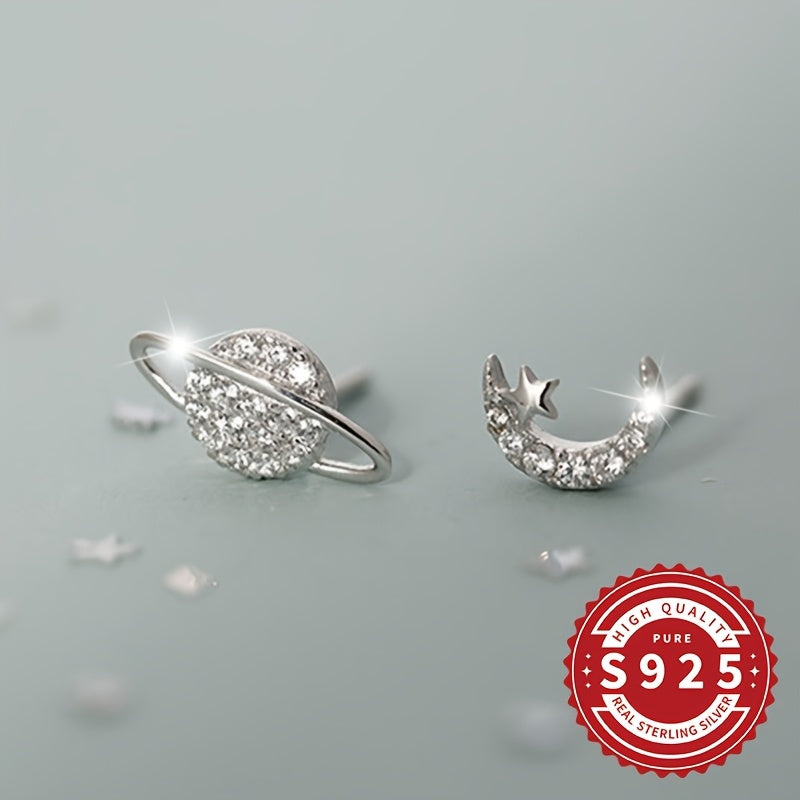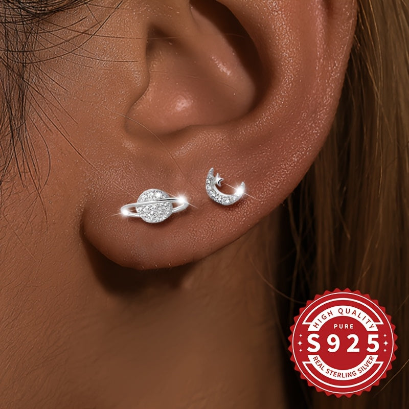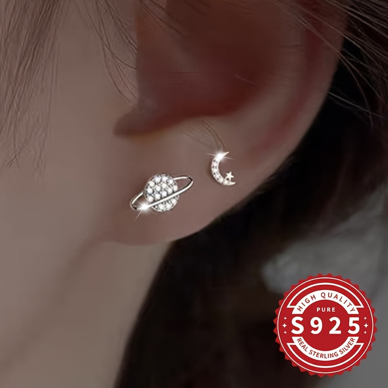 Add a touch of space-inspired style with these asymmetrical moon planet earrings. Made of S925 silver, these earrings symbolize freedom in space and are versatile for daily wear or gifting. Suitable for piercing.