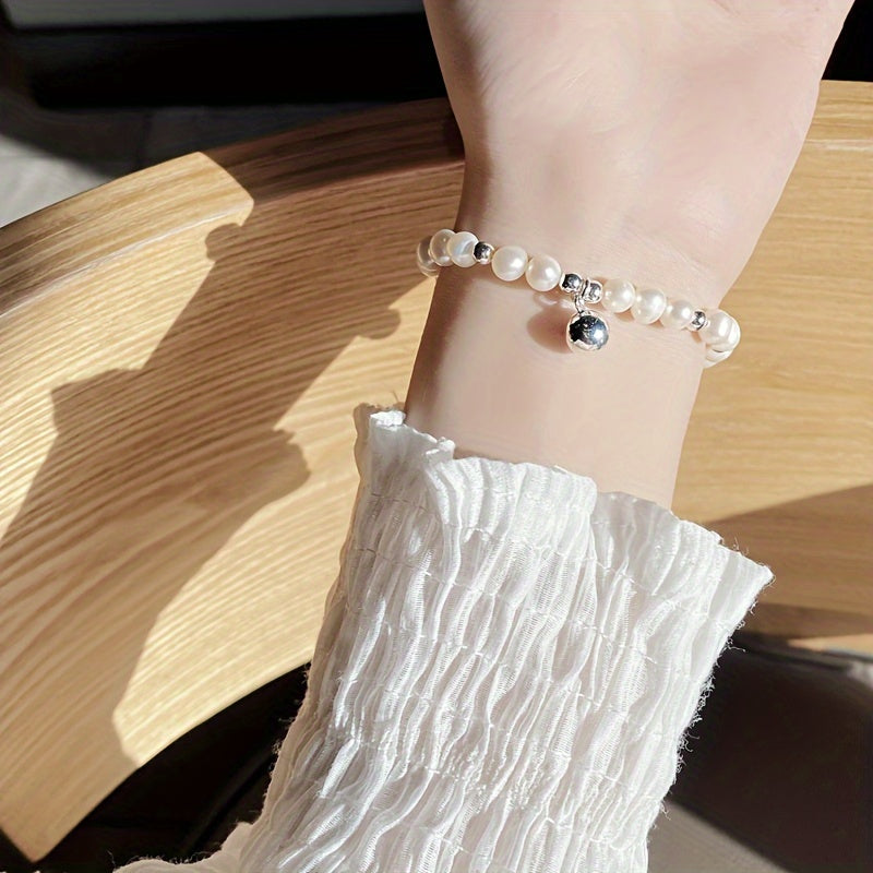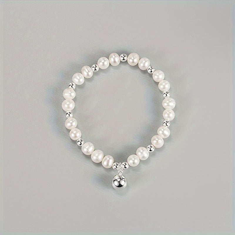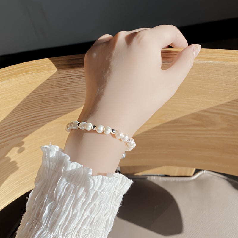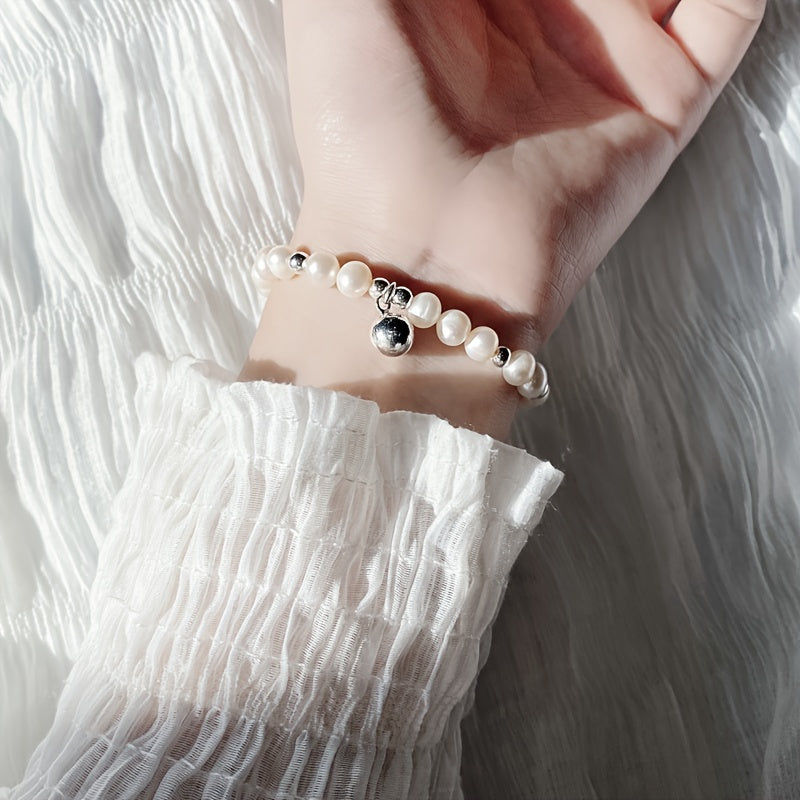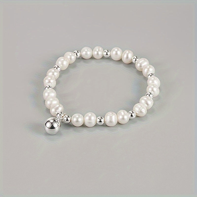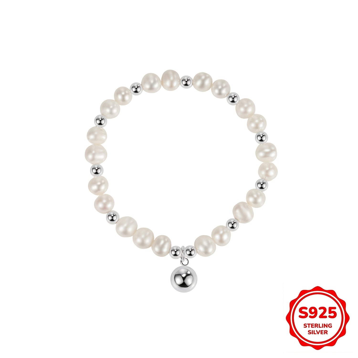 This stylish bracelet features natural freshwater pearls on a sterling silver chain, adding a touch of elegance to any outfit. The small round ball design and light color make it versatile for any occasion.