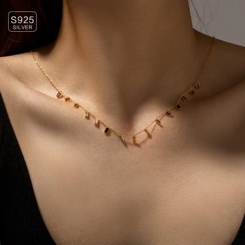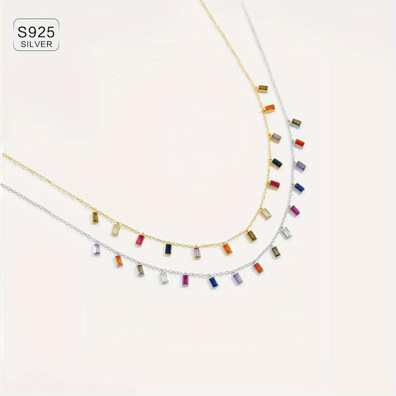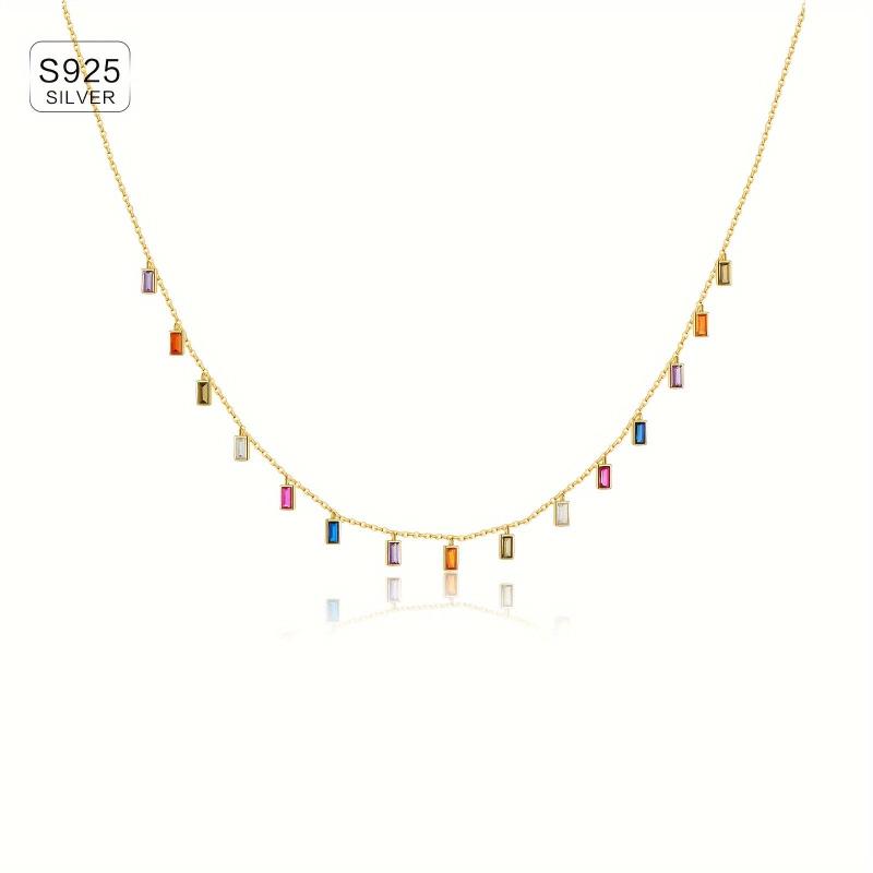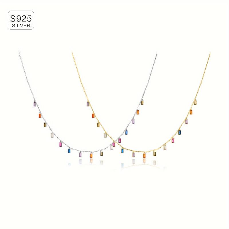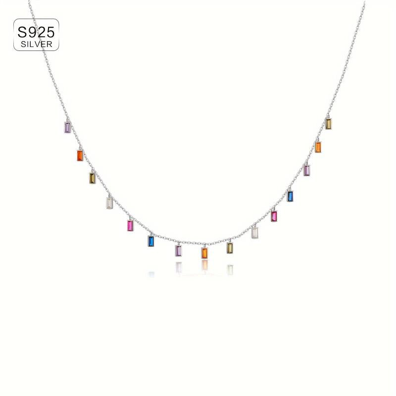 Add a pop of color to your outfit with this boho-style 925 sterling silver necklace featuring a vibrant synthetic zirconia tassel pendant. Perfect for adding a touch of flair to your vacation wardrobe.