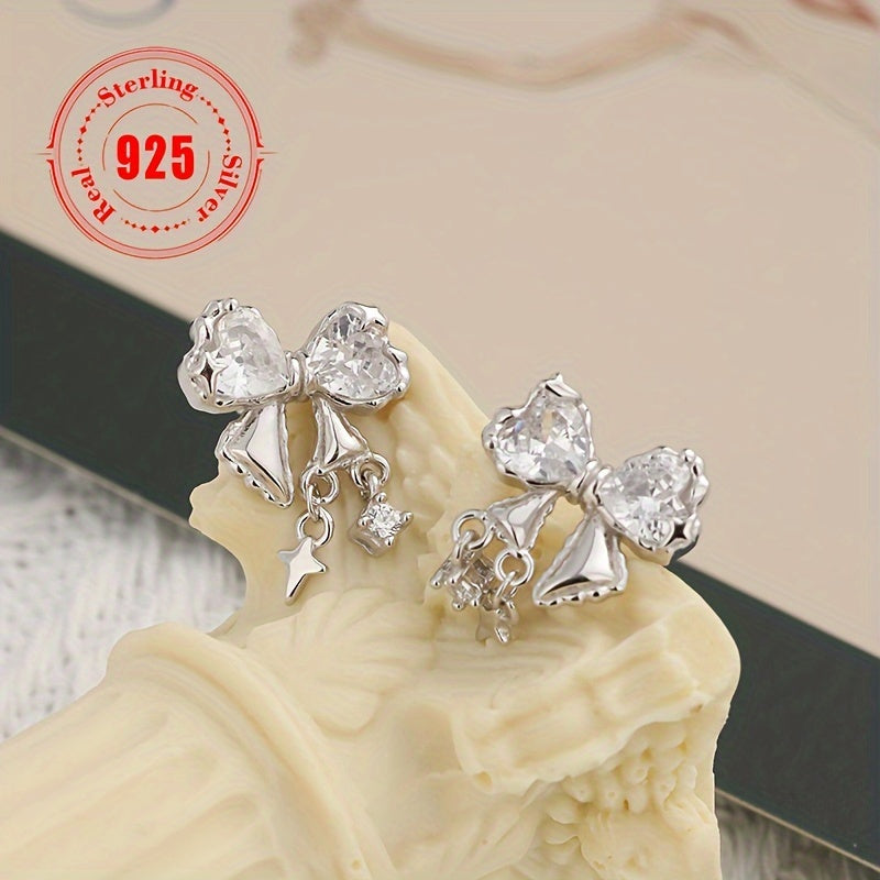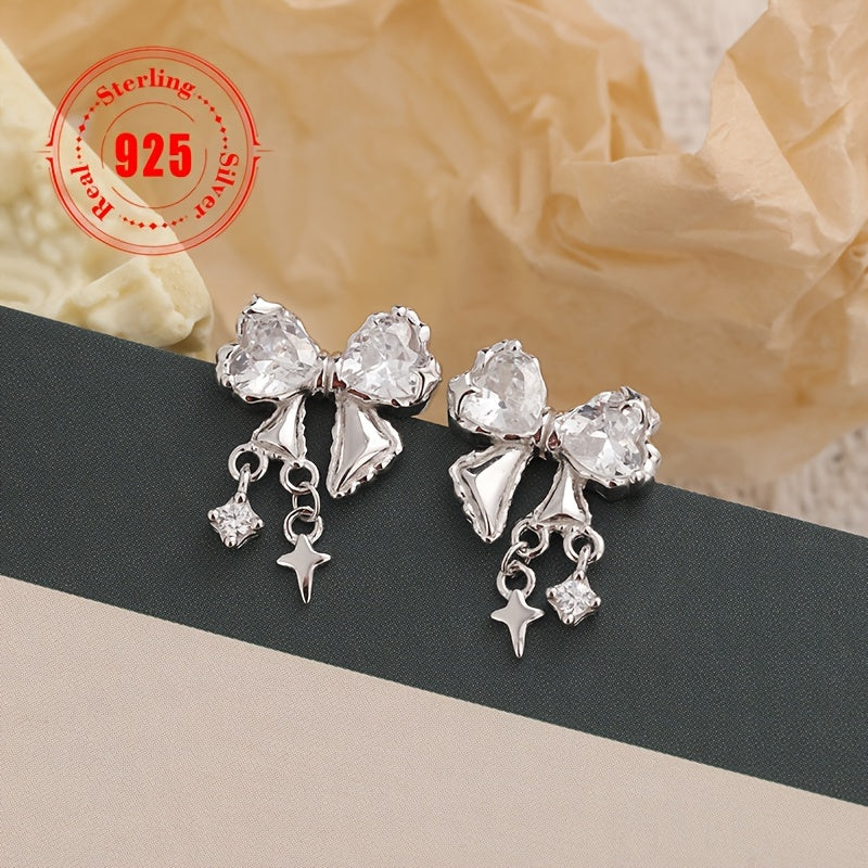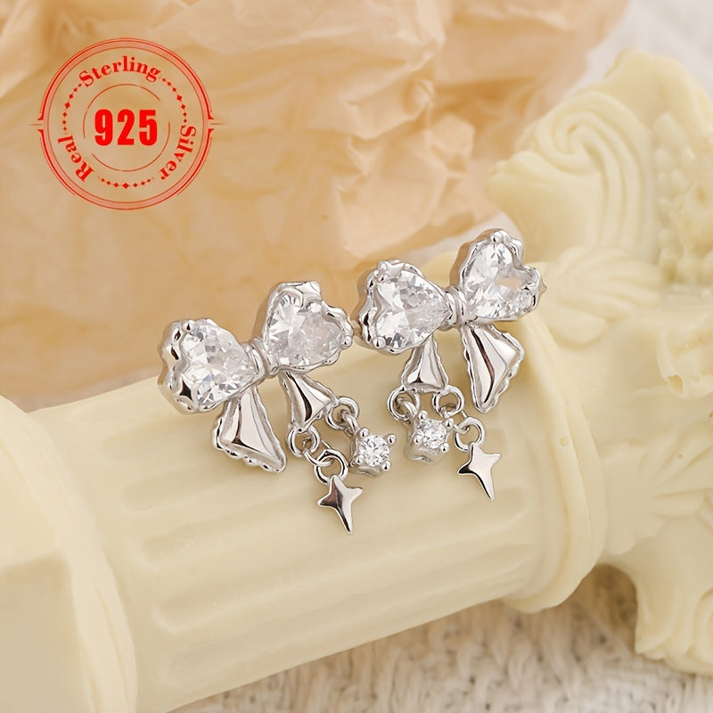 These elegant bow stud earrings are crafted from 925 sterling silver, weighing approximately 3.7g. They exude a classic temperament and add a touch of sexy charm to your look.
