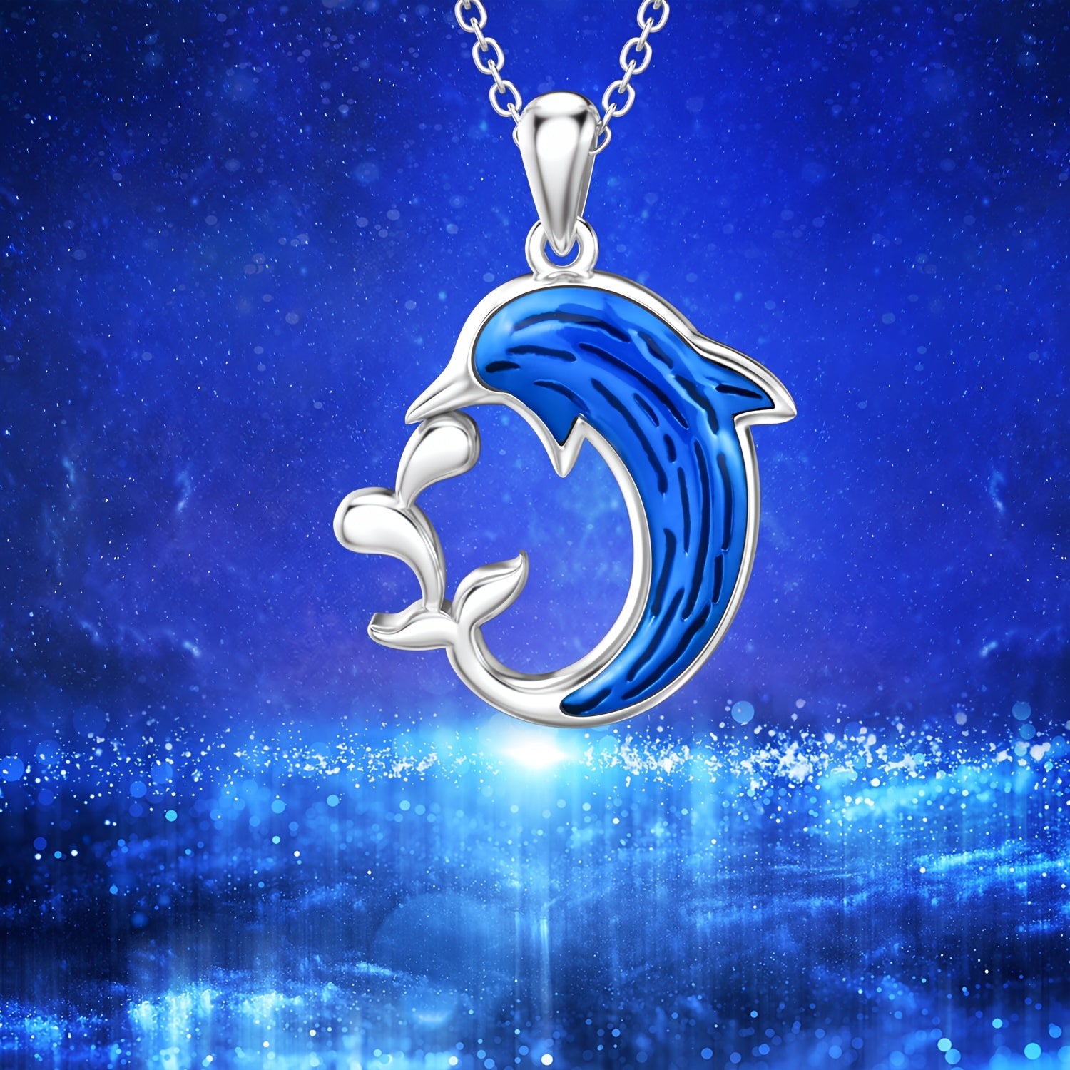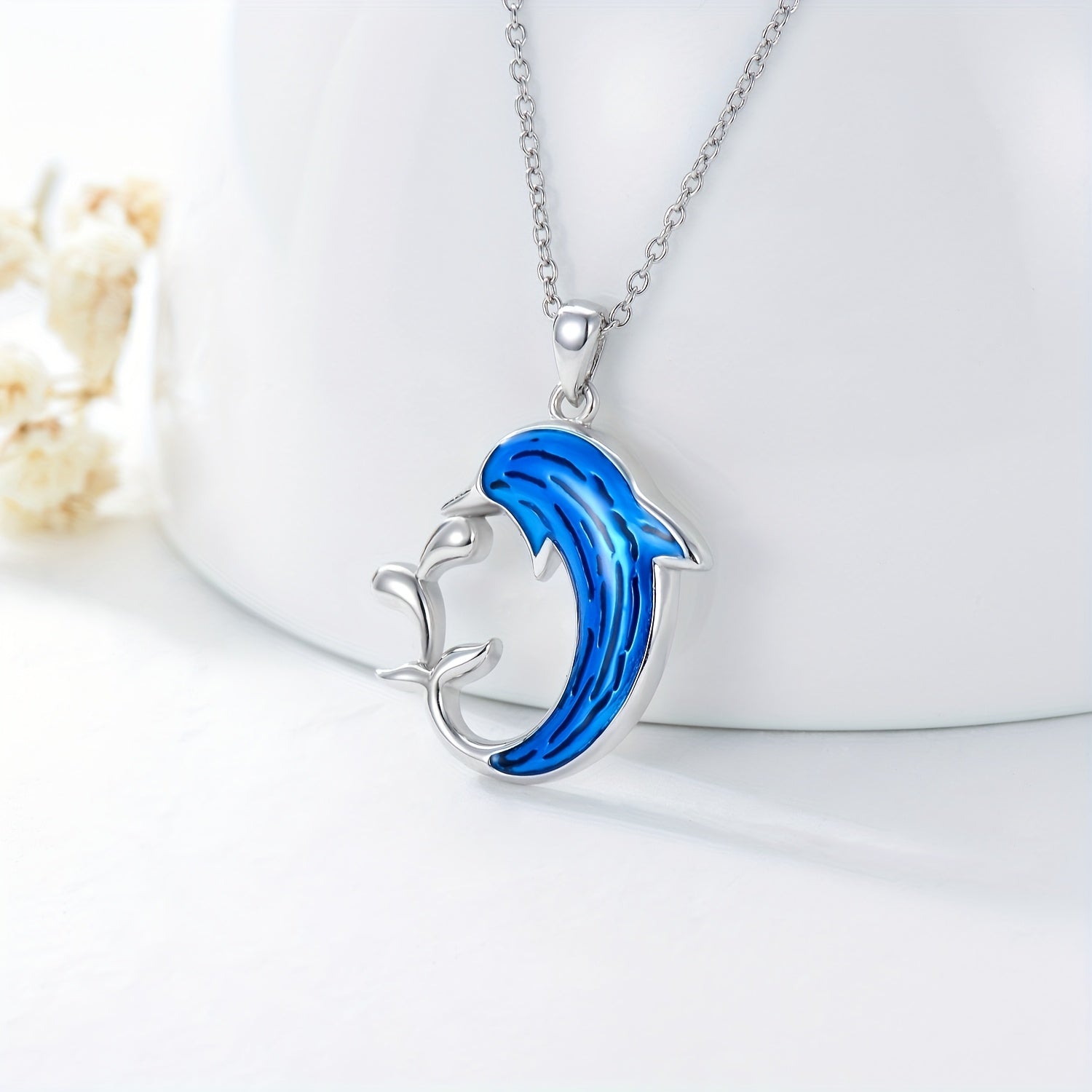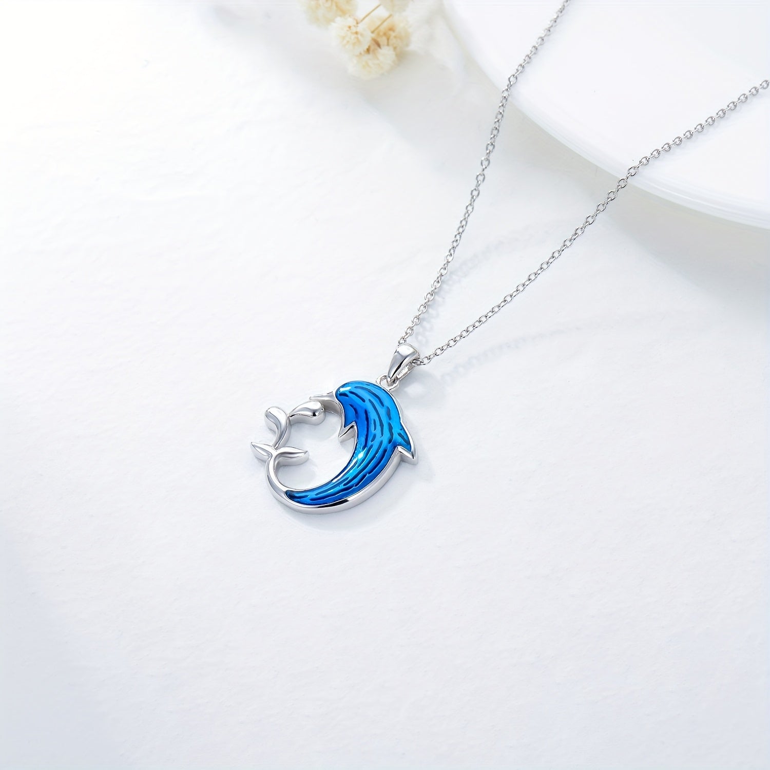 This beautiful necklace features a dolphin design in 925 sterling silver, perfect for ocean lovers. Great as a gift for couples, mums, daughters, women, and girls.