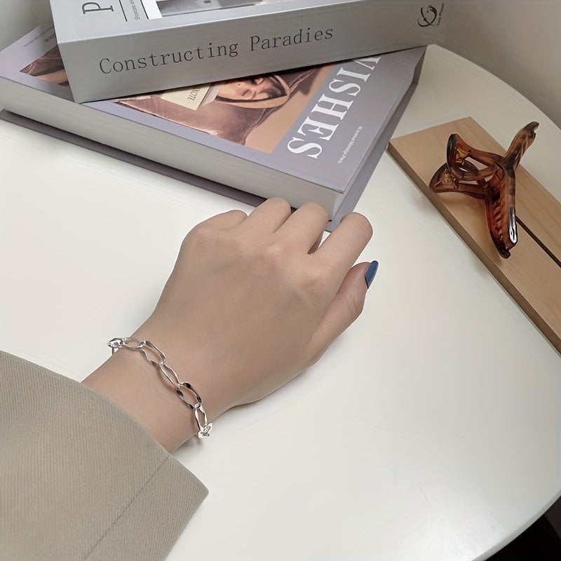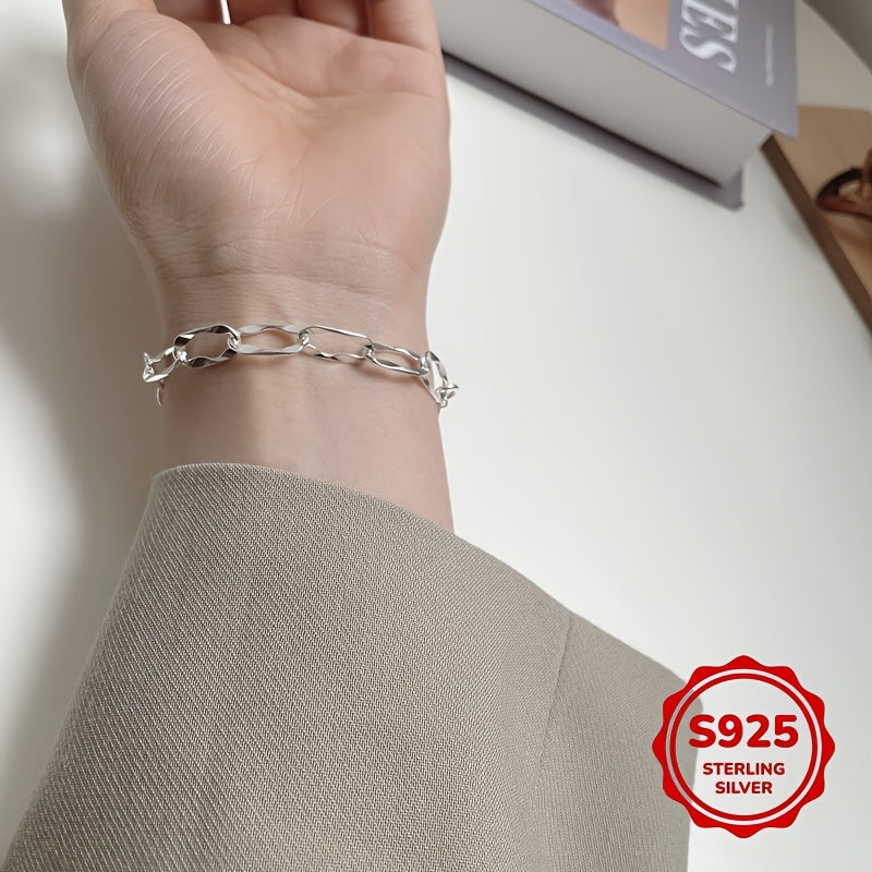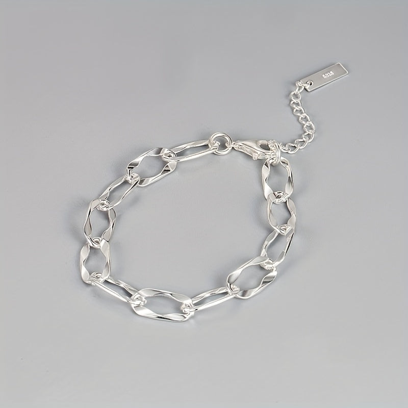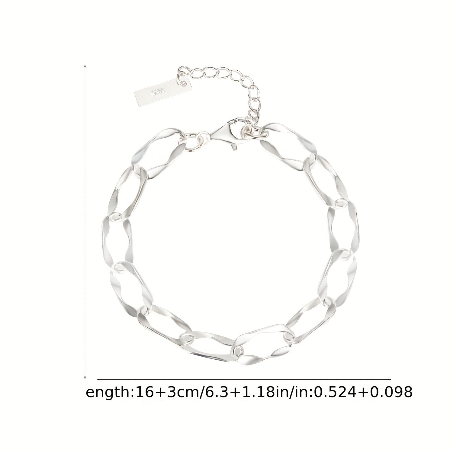 This Dongdaemun S925 pure silvery bracelet features a long circle design with pressed four corners. It is a fashionable accessory suitable for both women and students. The net weight of the silvery bracelet is 5.85g.