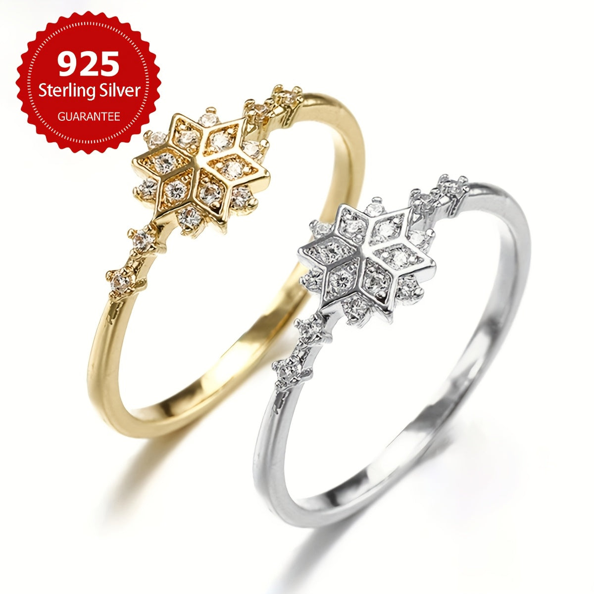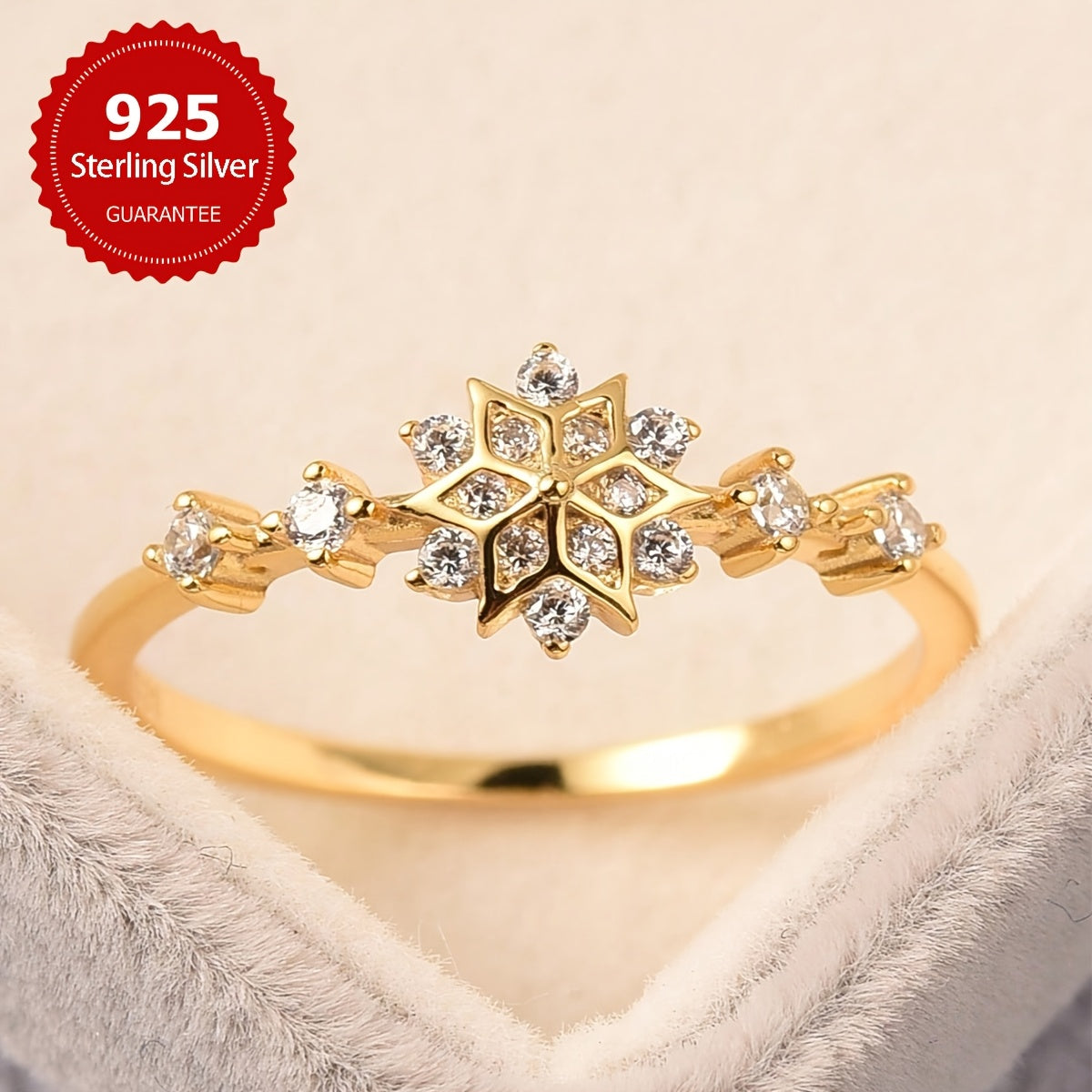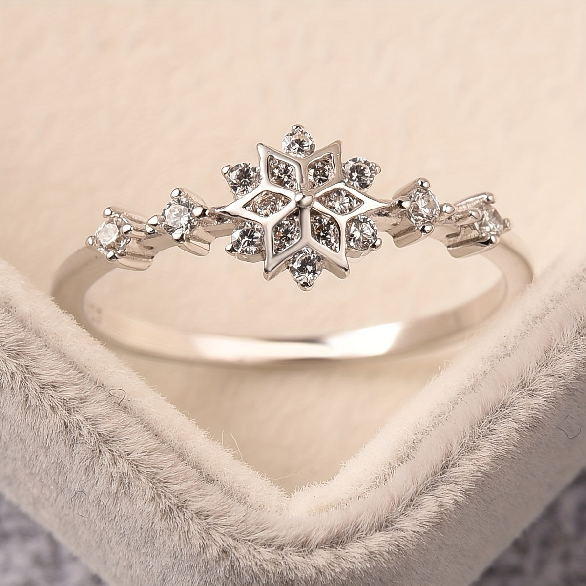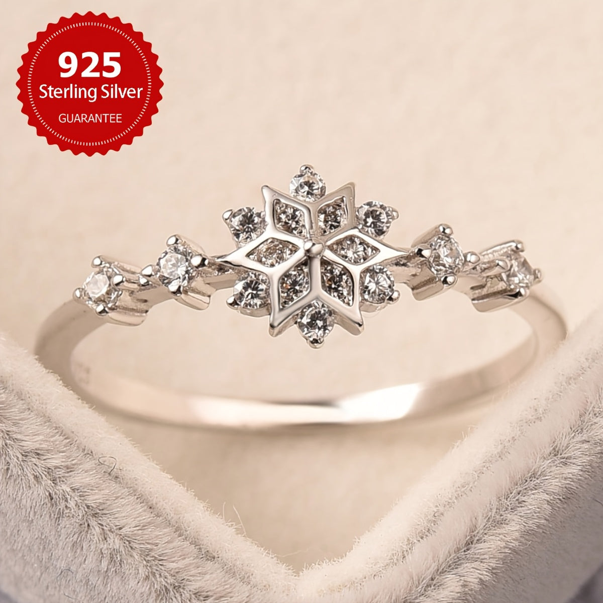 Elegant Snowflake Ring S925 Sterling Silver 1.3g for Wedding Engagement