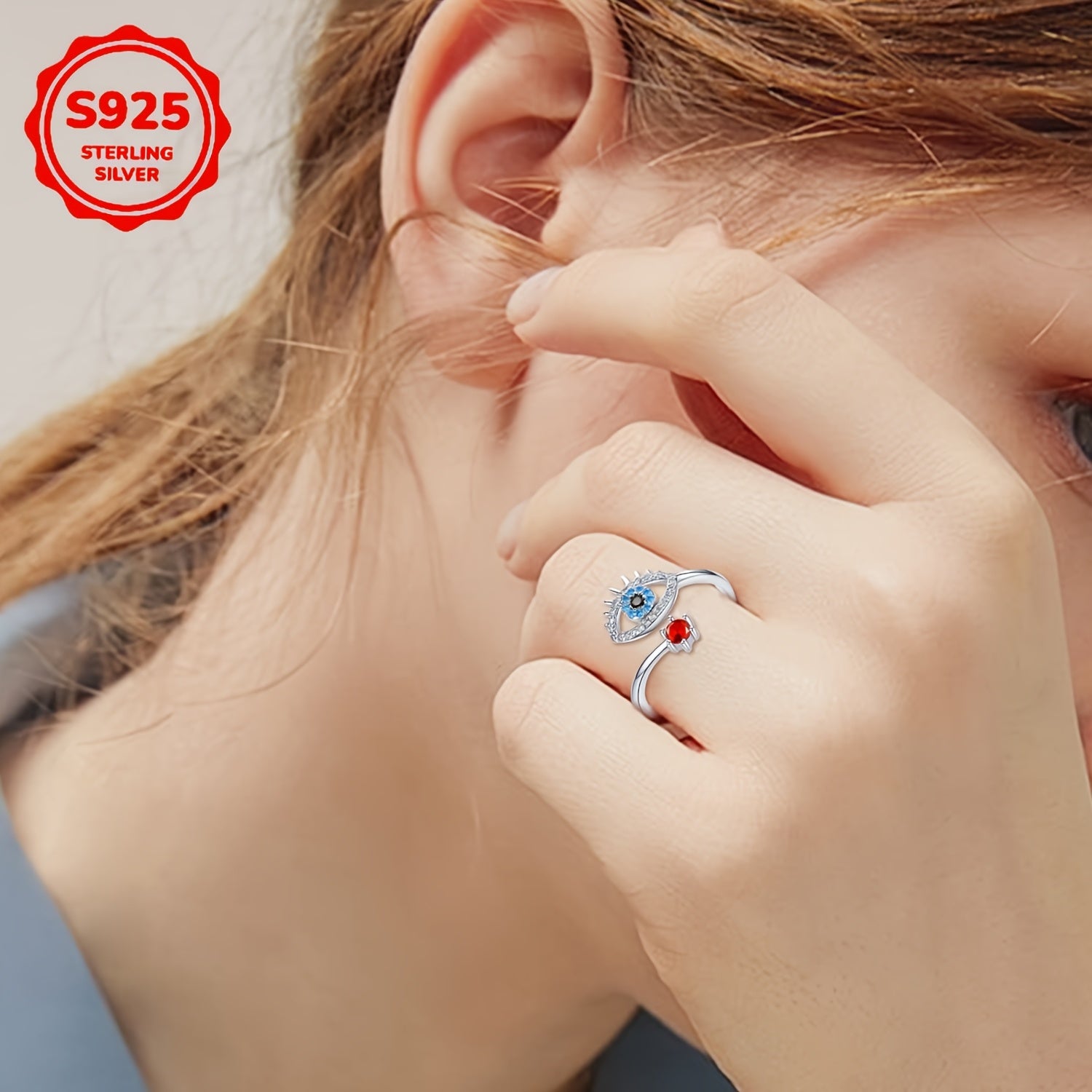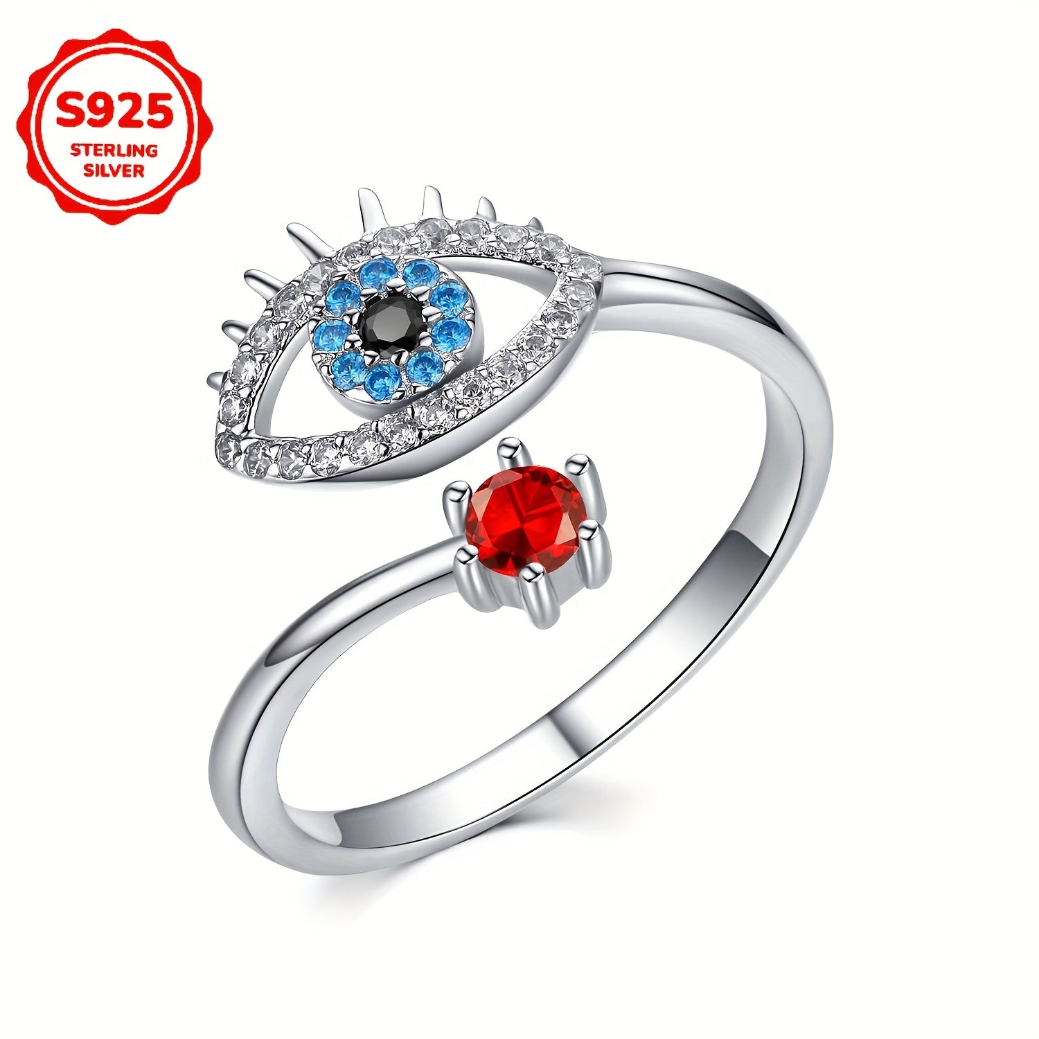 This stylish Evil Eye Ring features a July birthstone and is made of 925 sterling silver. It is adjustable and makes a fashionable gift for women on their birthday.
