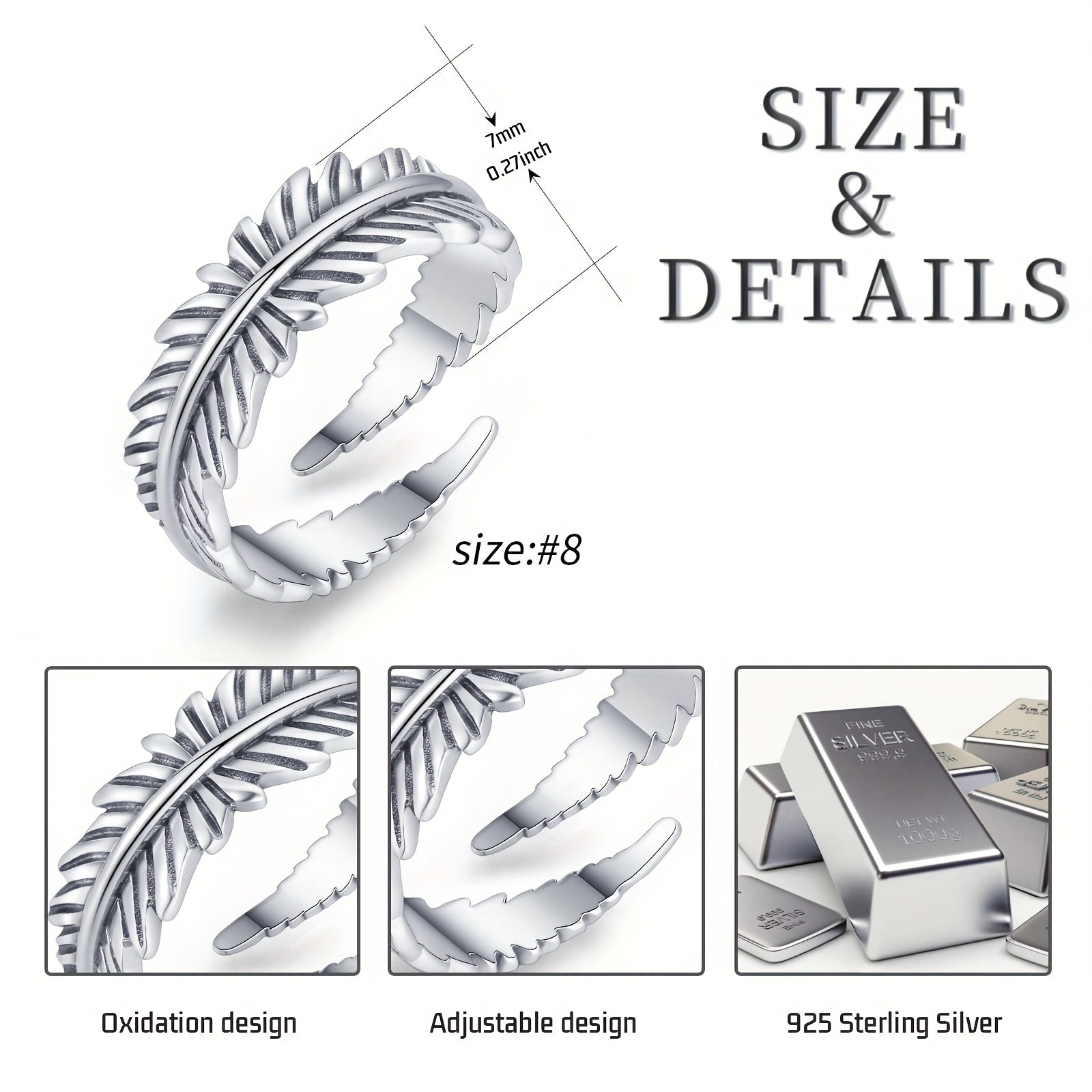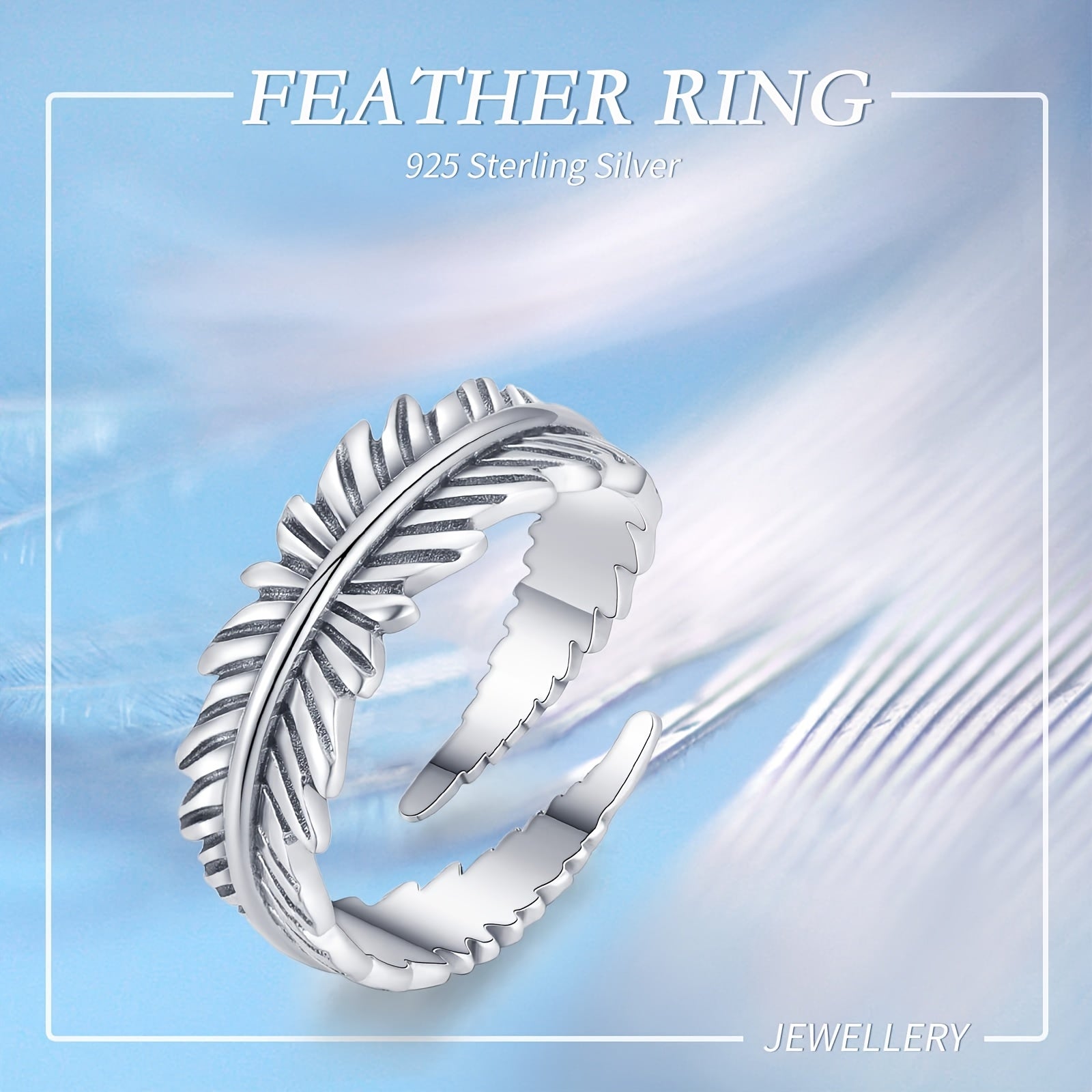 This stylish feather ring is made of 925 sterling silver, perfect for women with sensitive skin. It makes a great birthday or Valentine's gift.