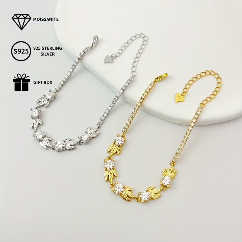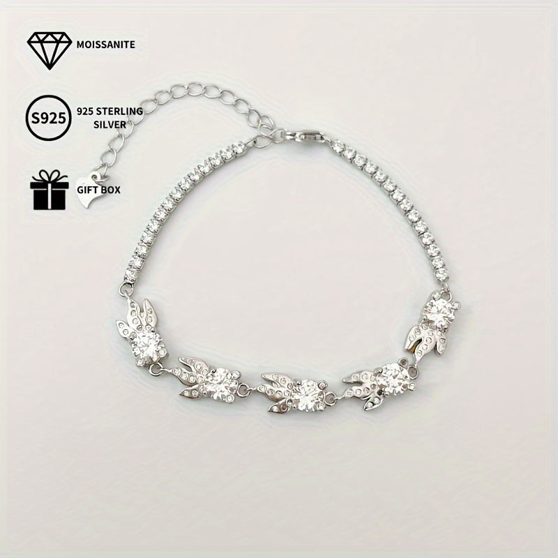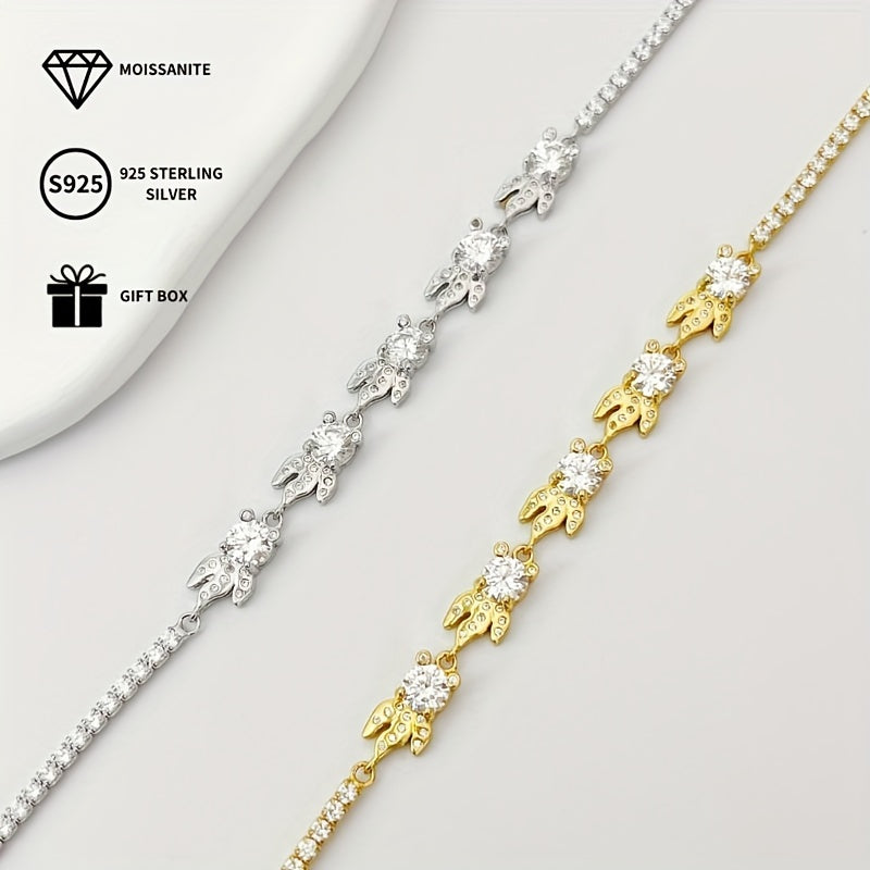 This stunning goldfish bracelet features a 0.5ct moissanite stone set in 925 sterling silver with platinum plating. Perfect for parties and music events, this accessory is an ideal gift for all seasons.
