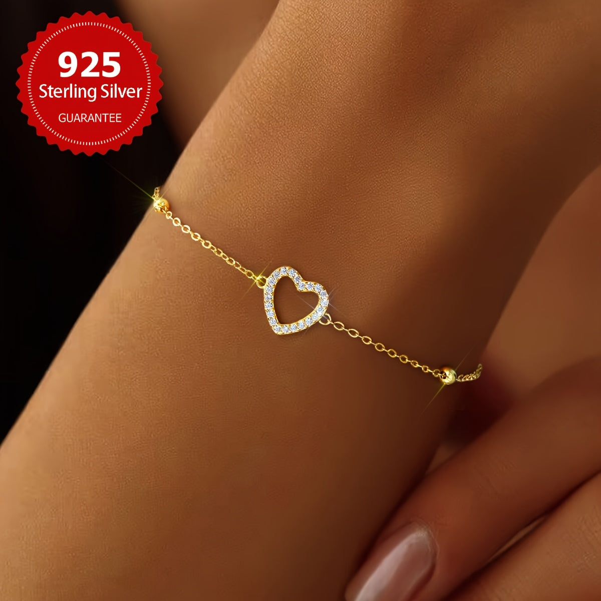 This elegant bracelet features a heart design with round accents crafted from s925 sterling silver. A perfect accessory for women.
