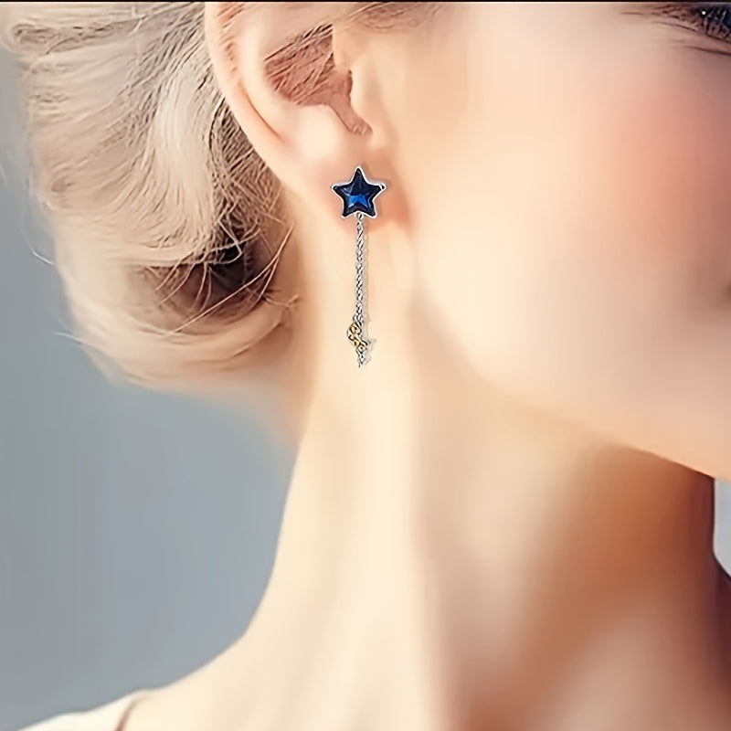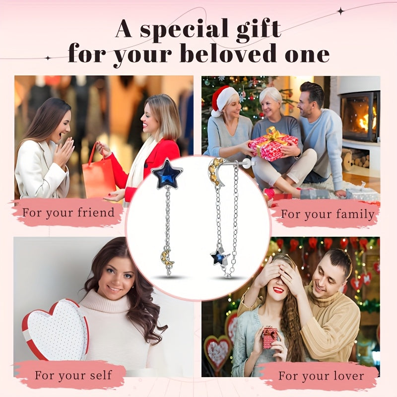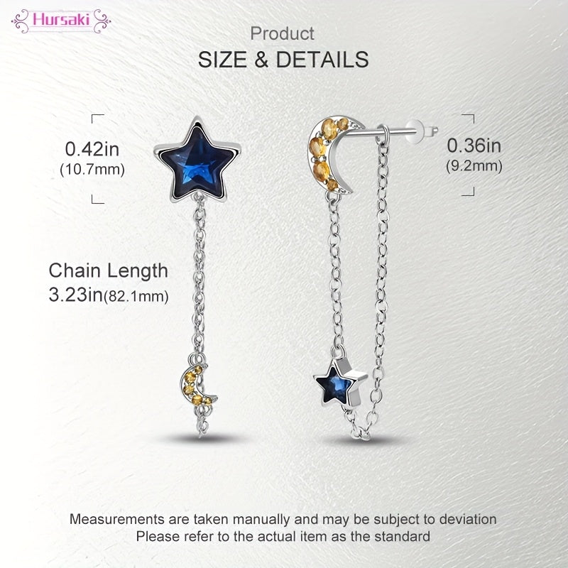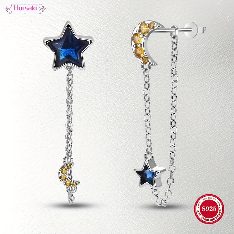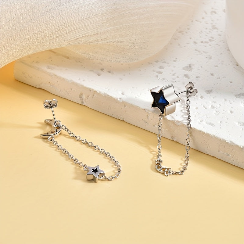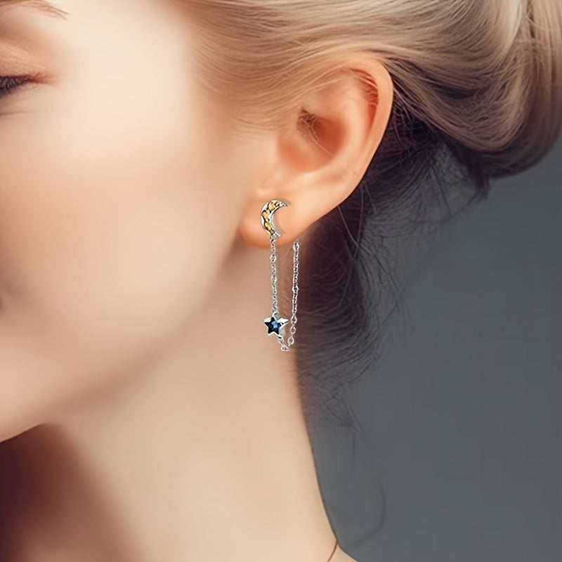 These unique fine earrings feature star and moon design with tassel details. Made of hypoallergenic 925 sterling silver, perfect for sensitive skin. Ideal for weddings, parties, and everyday wear.