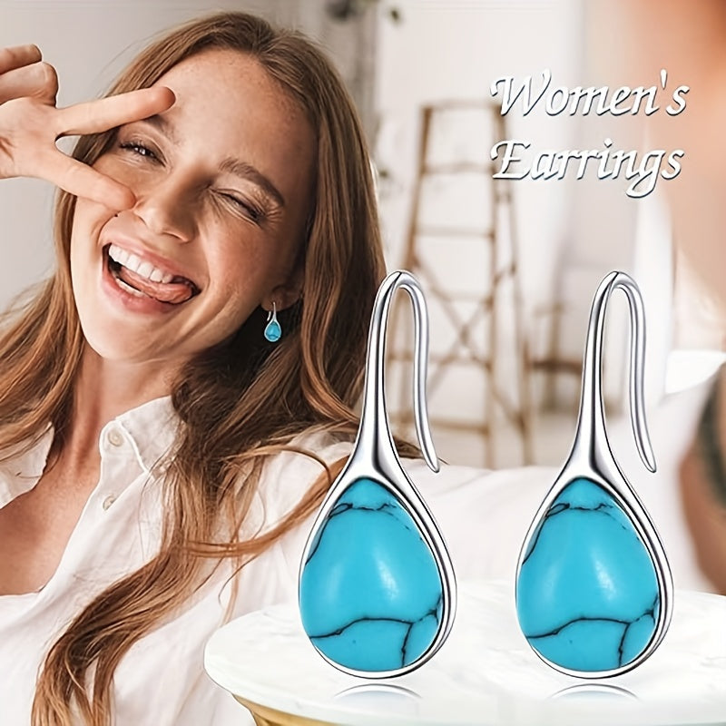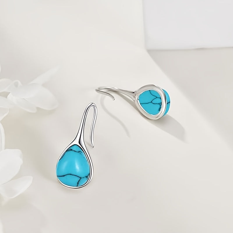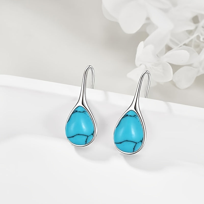 Stunning silver plated teardrop earrings featuring turquoise dangles. Made with 925 sterling silver needle, hypoallergenic for sensitive ears. Perfect for daily wear or as a gift.