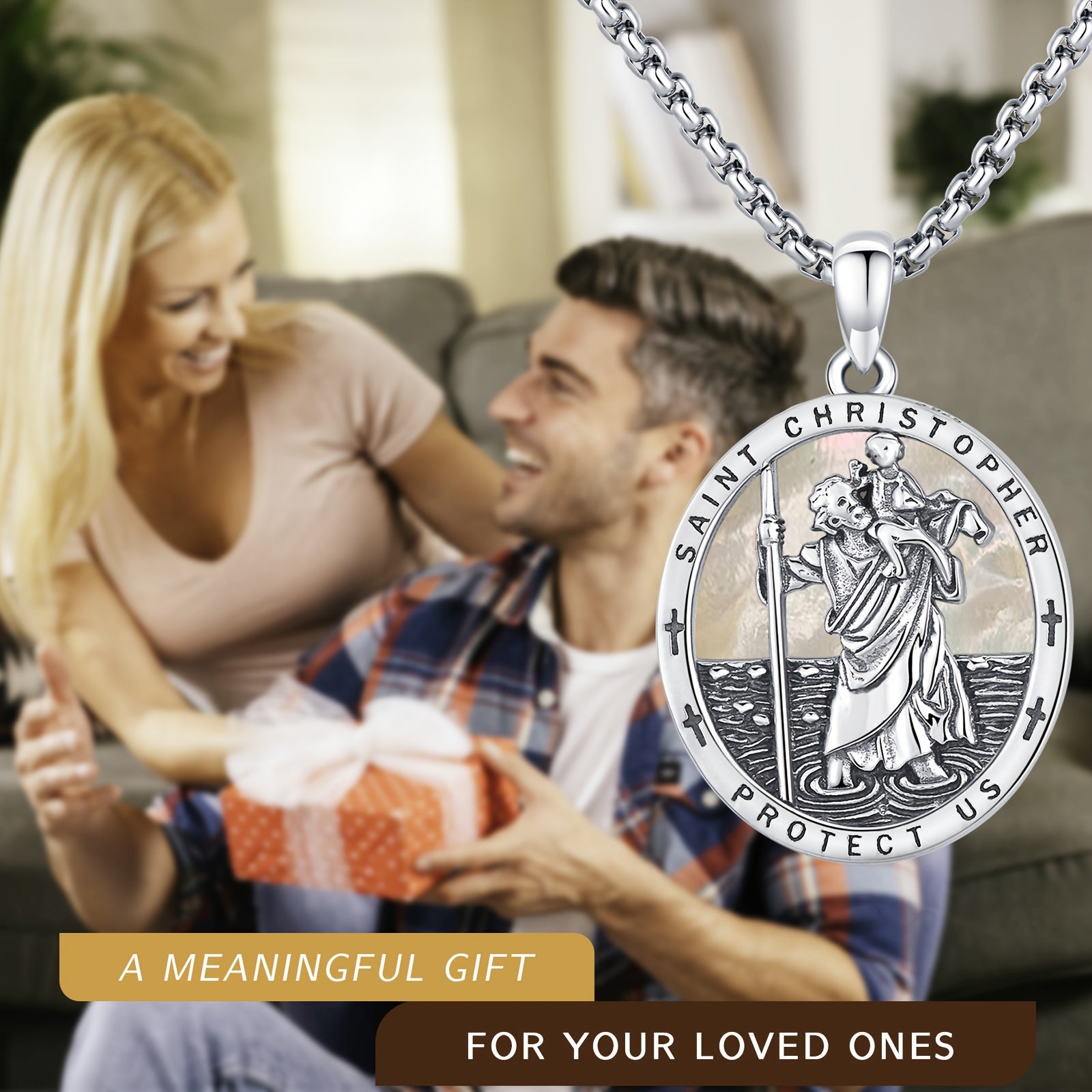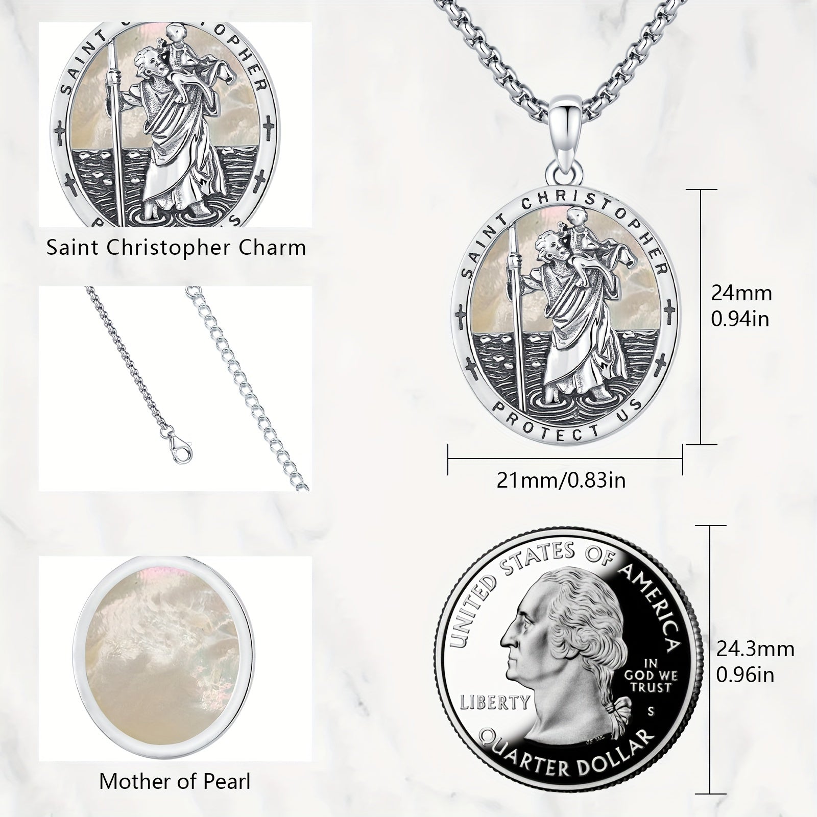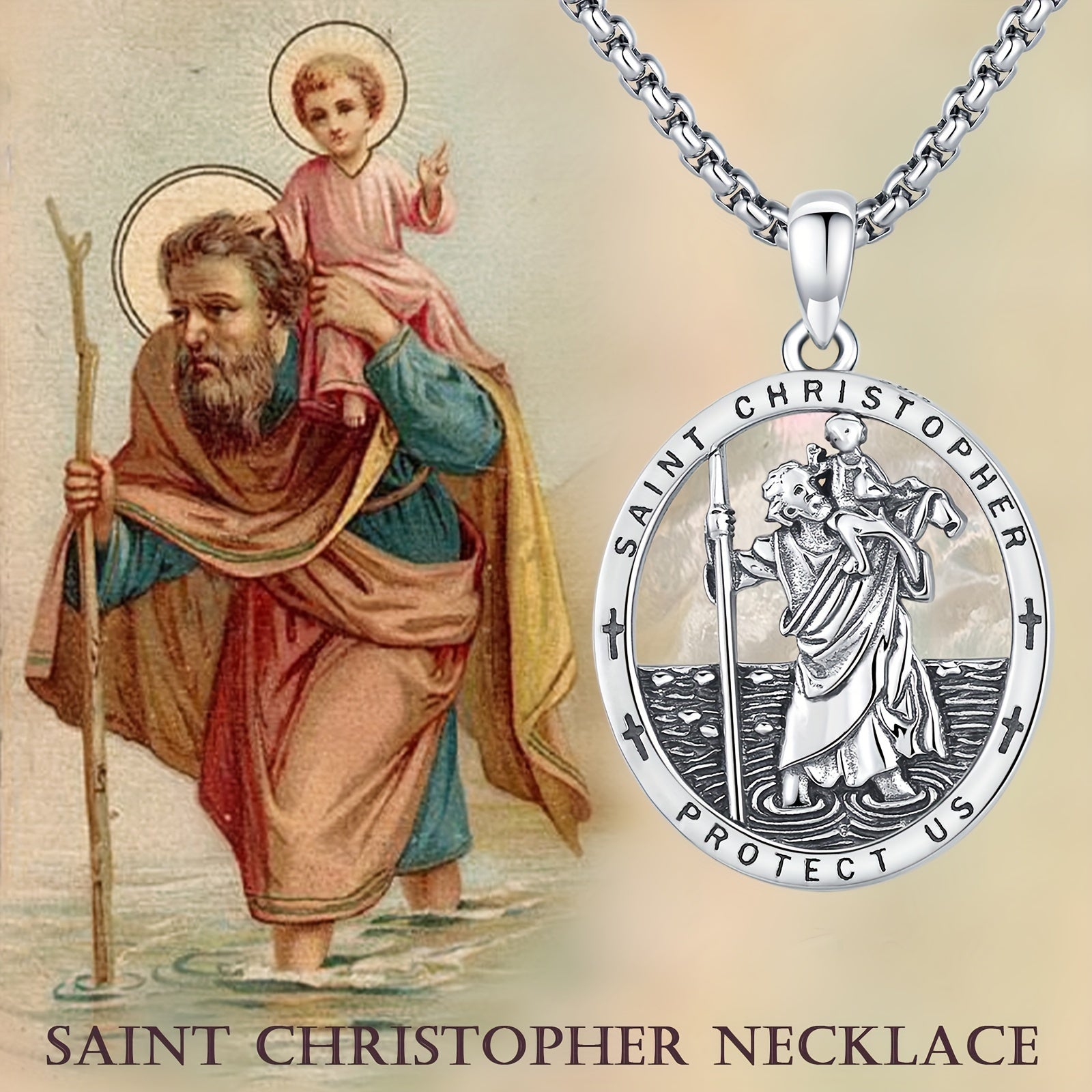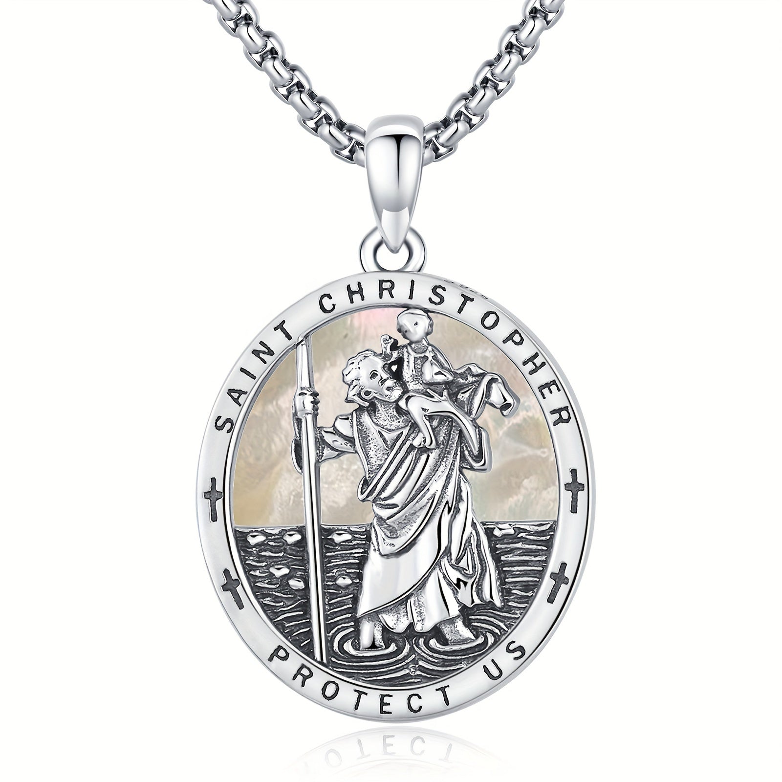 Men's St Christopher Necklace 925 Sterling Silver Antique Religious Pendant
