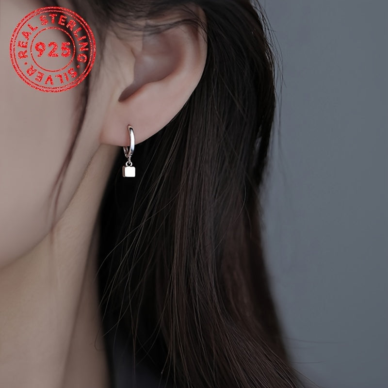 Elevate your look with these delicate S925 silver square pendant earrings designed for daily wear and festivals. The minimalist style adds a touch of elegance to any outfit.