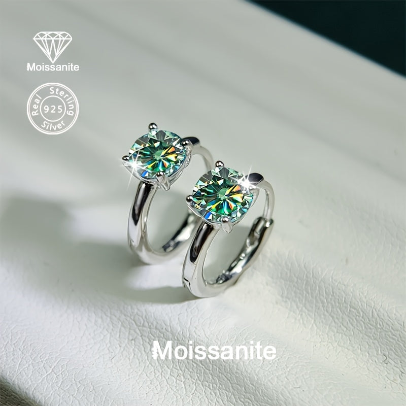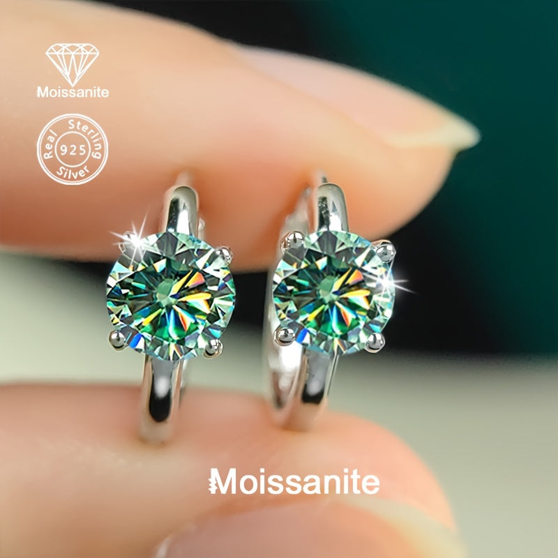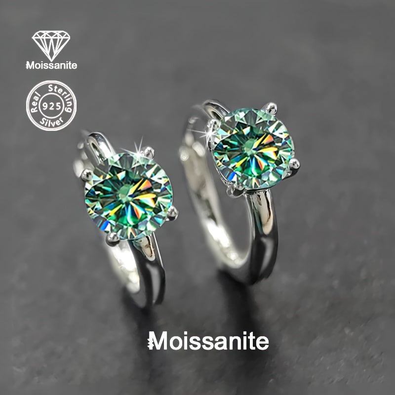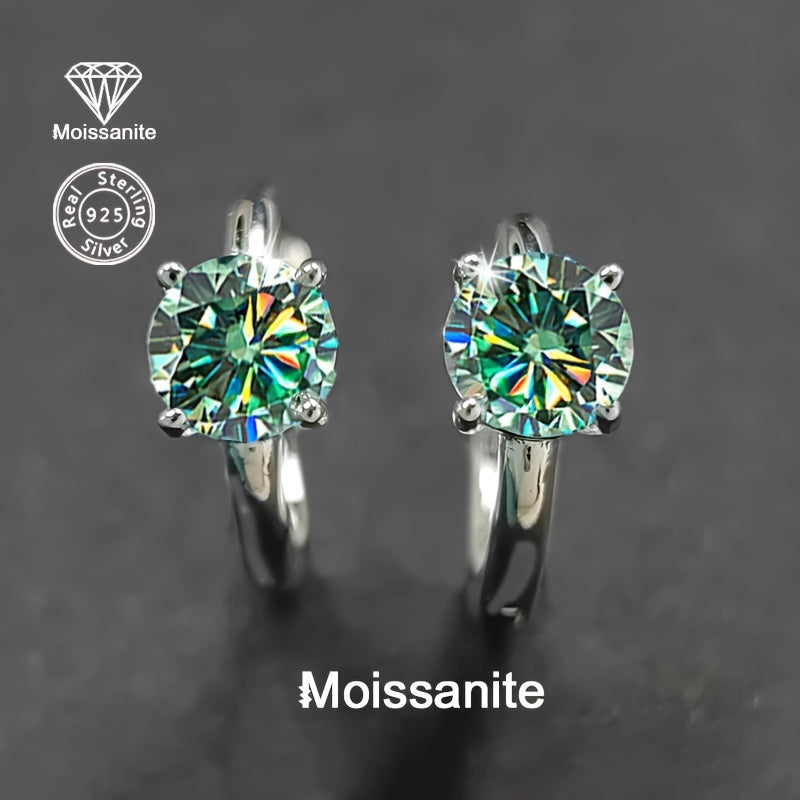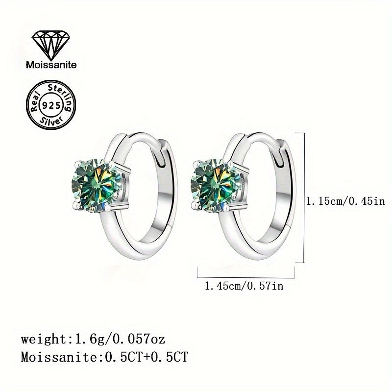 These elegant hoop earrings feature 1 carat green moissanite stones set in 925 sterling silver with a golden plated finish. They are lightweight and versatile, perfect for party or daily wear.