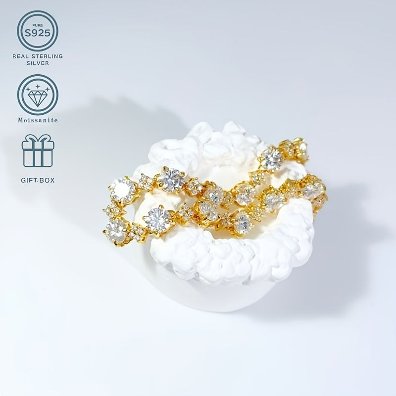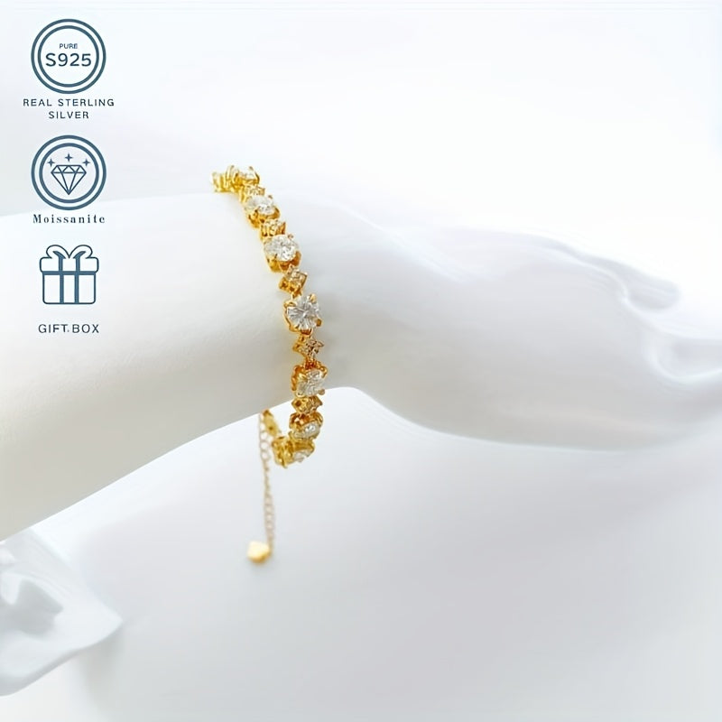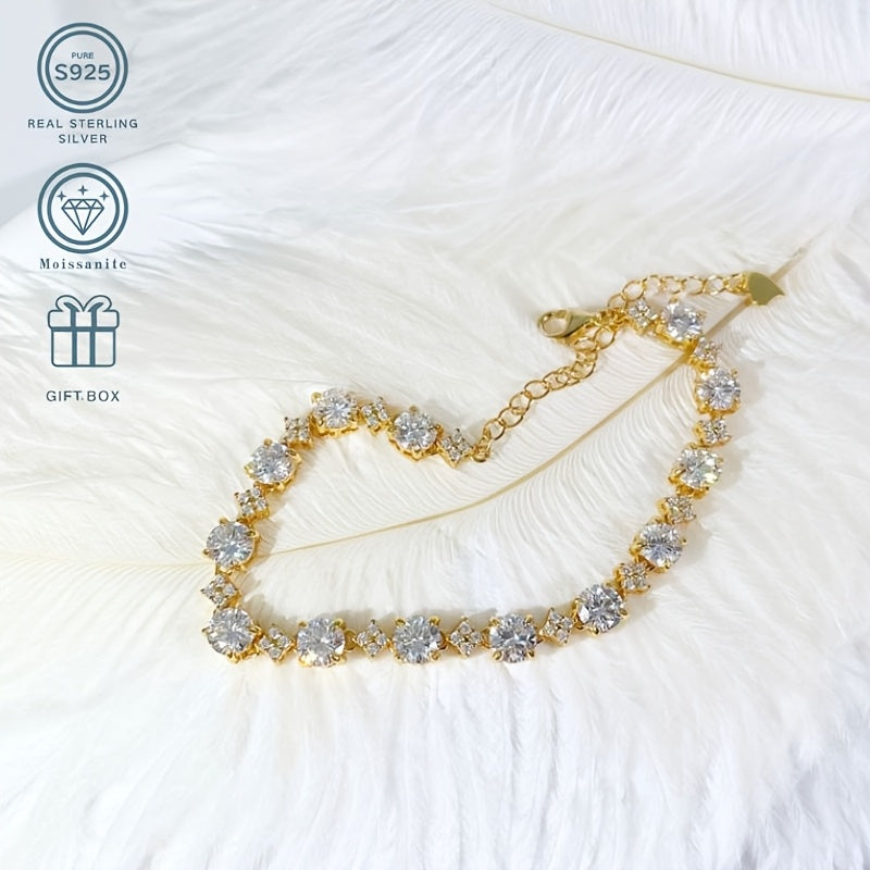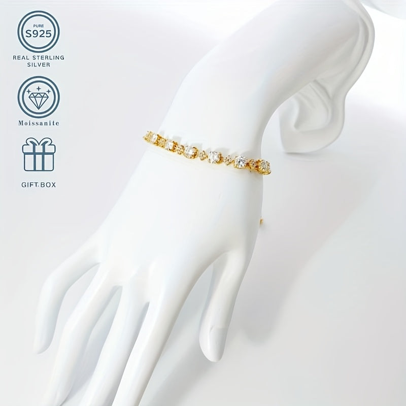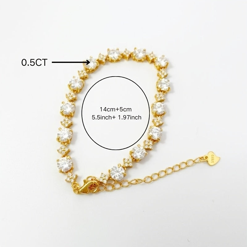 Elegant tennis bracelet set with a single 0.5CT Moissanite. Total weight approximately 6.51g. Perfect for formal occasions.