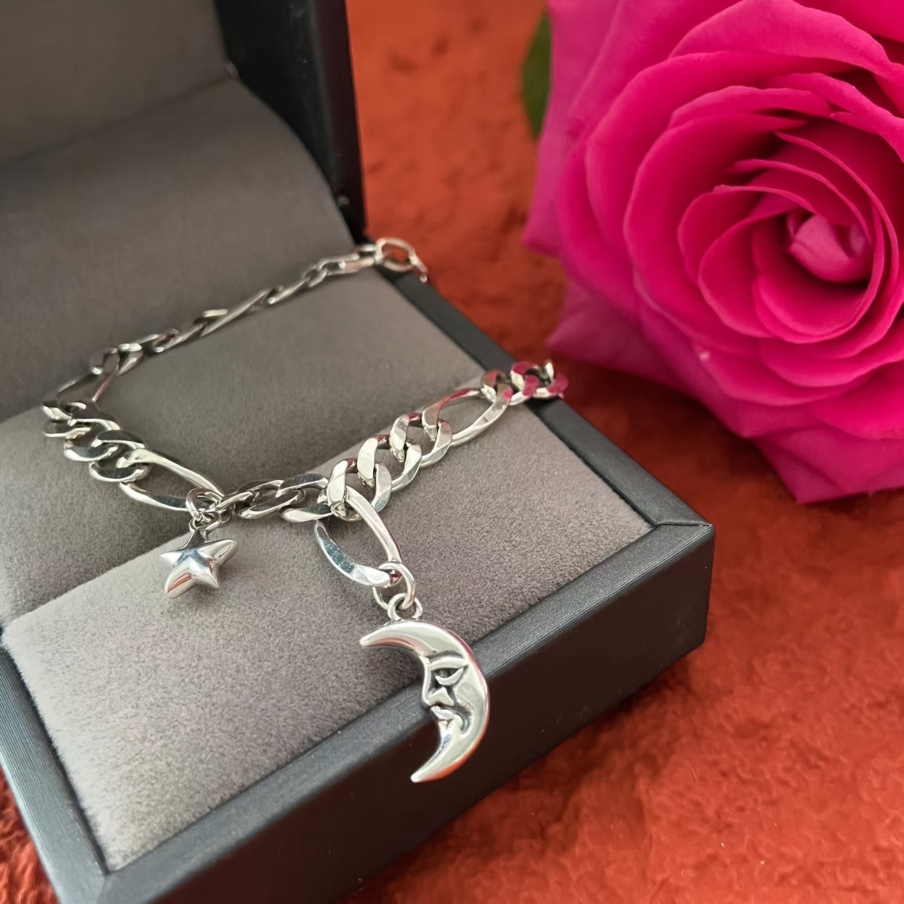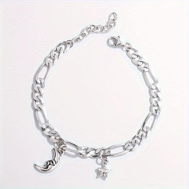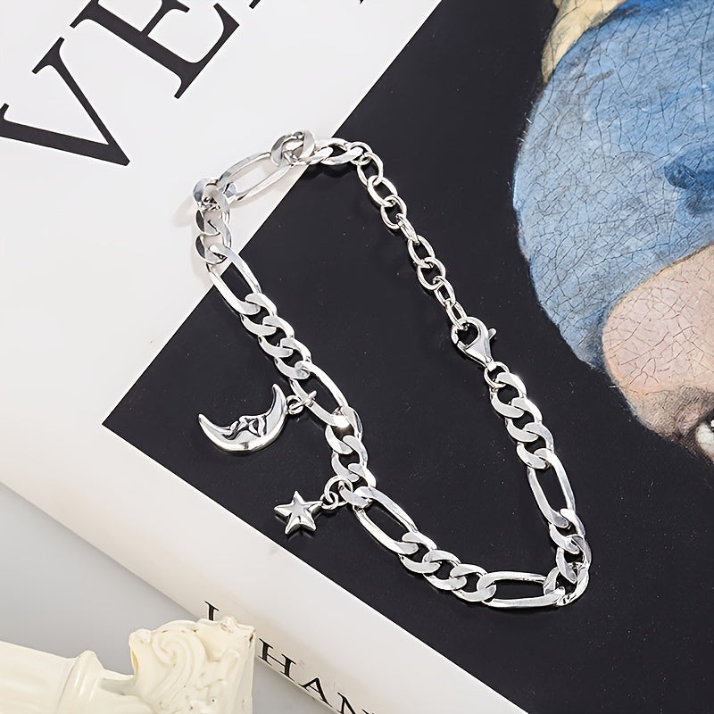 This bracelet features a retro cold wind design with moon and star charms. Made of pure S925 silver, it exudes a niche personality.