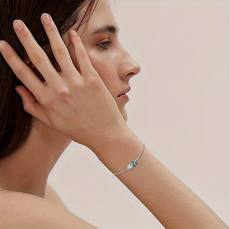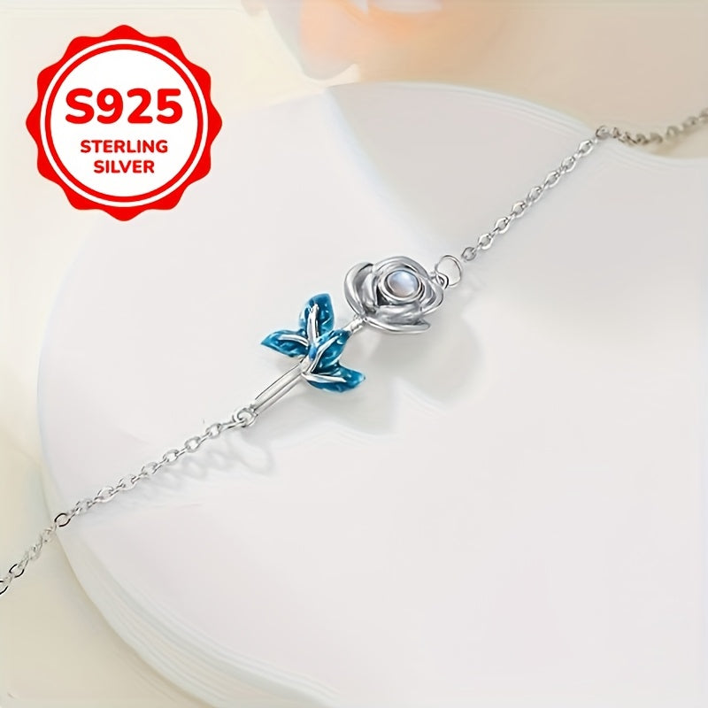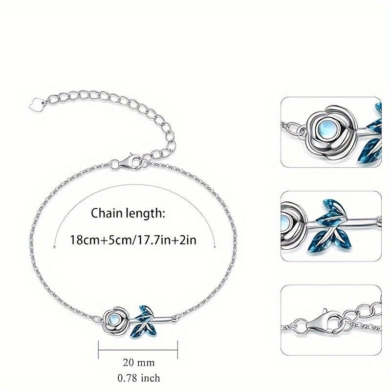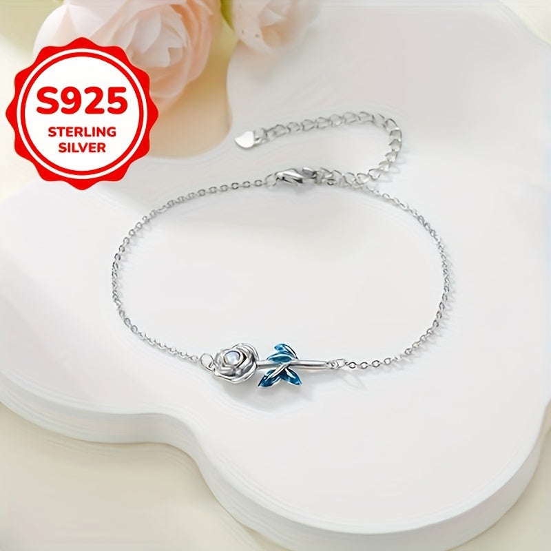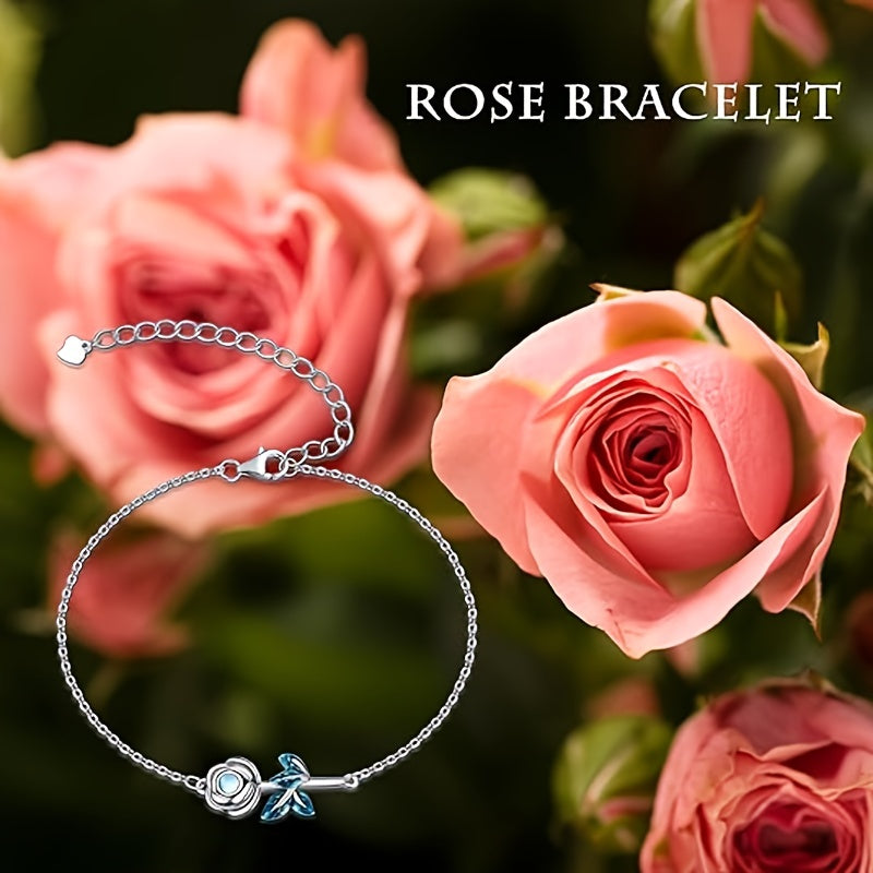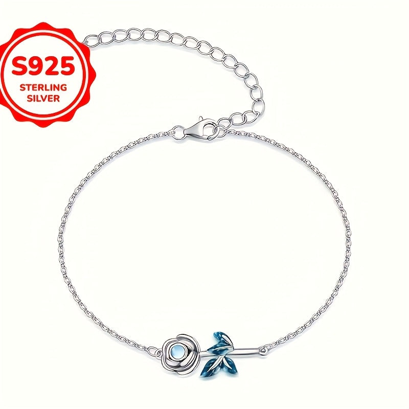 Elegant s925 silver bracelet featuring a rose design with moonstone inset, perfect for women's jewelry. Lightweight at 3.6g, ideal for those with allergies to traditional silver.