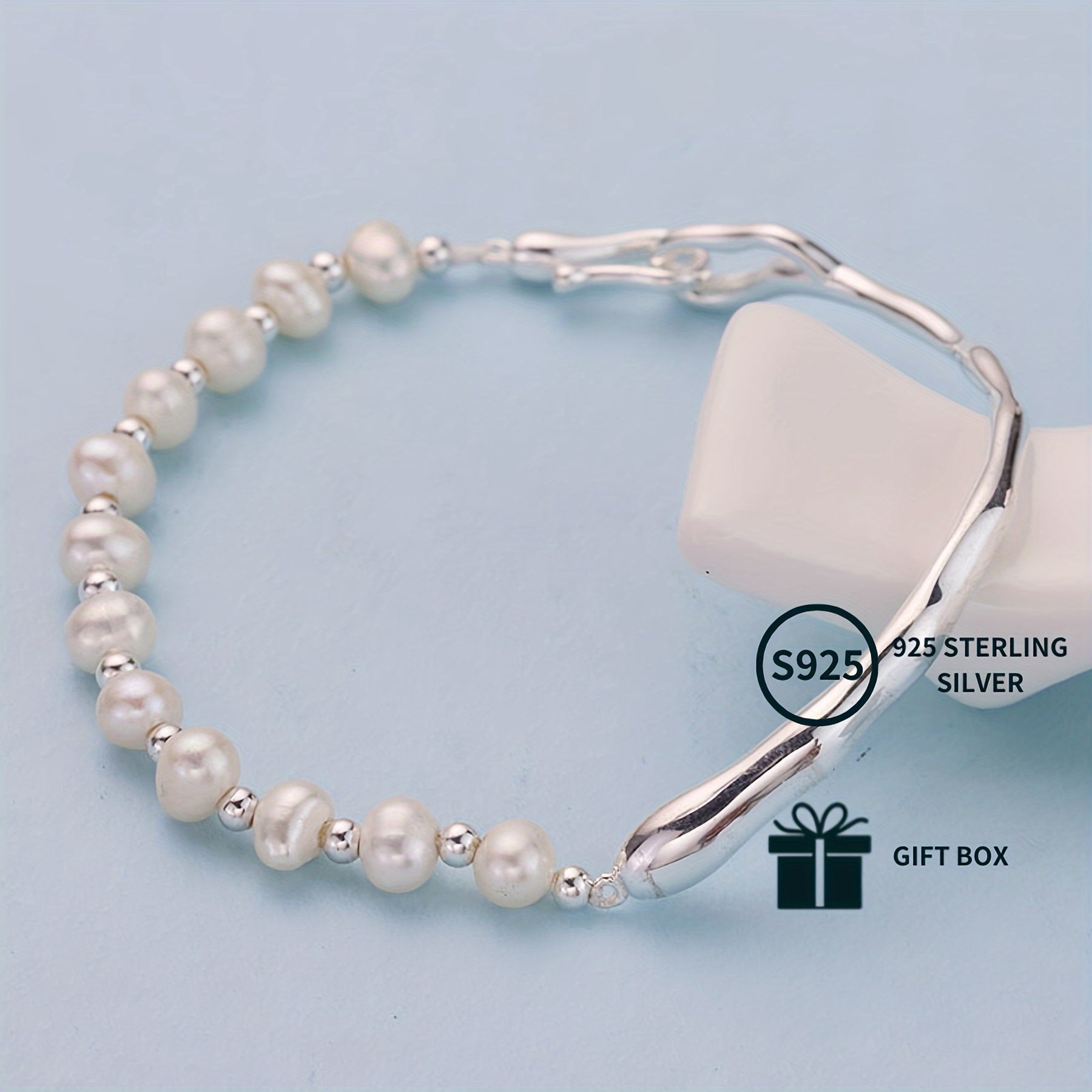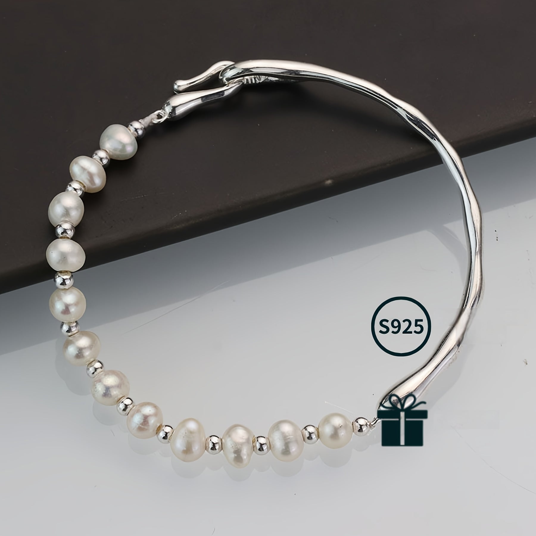 ODEK Boho Style S925 Sterling Silvery Bracelet with Freshwater Pearls