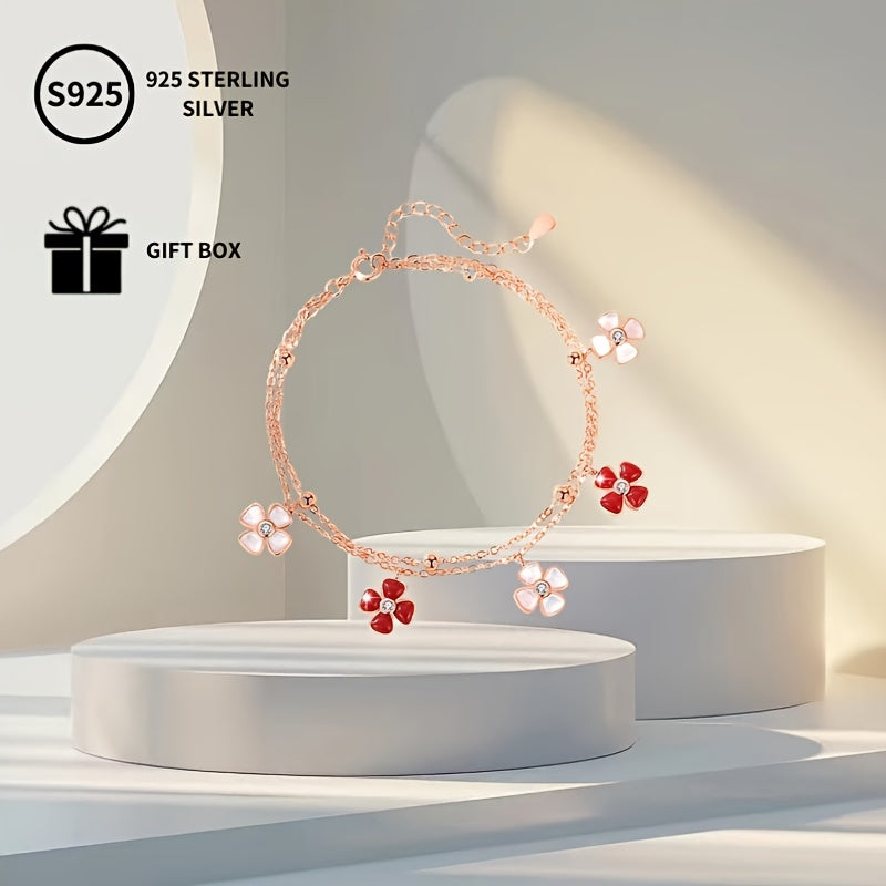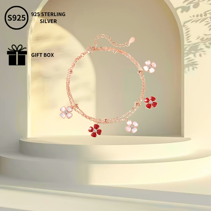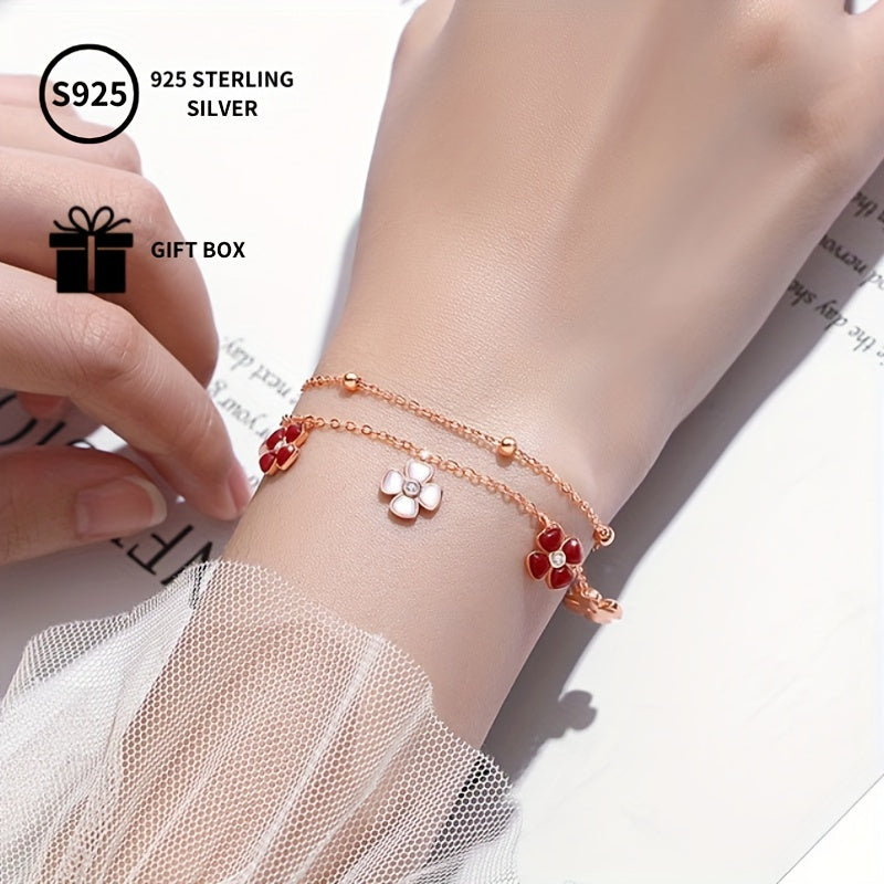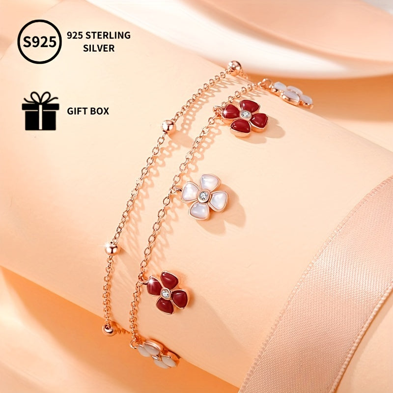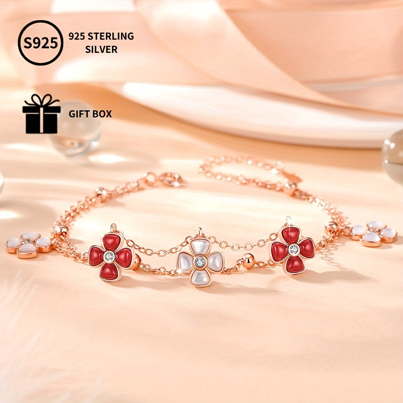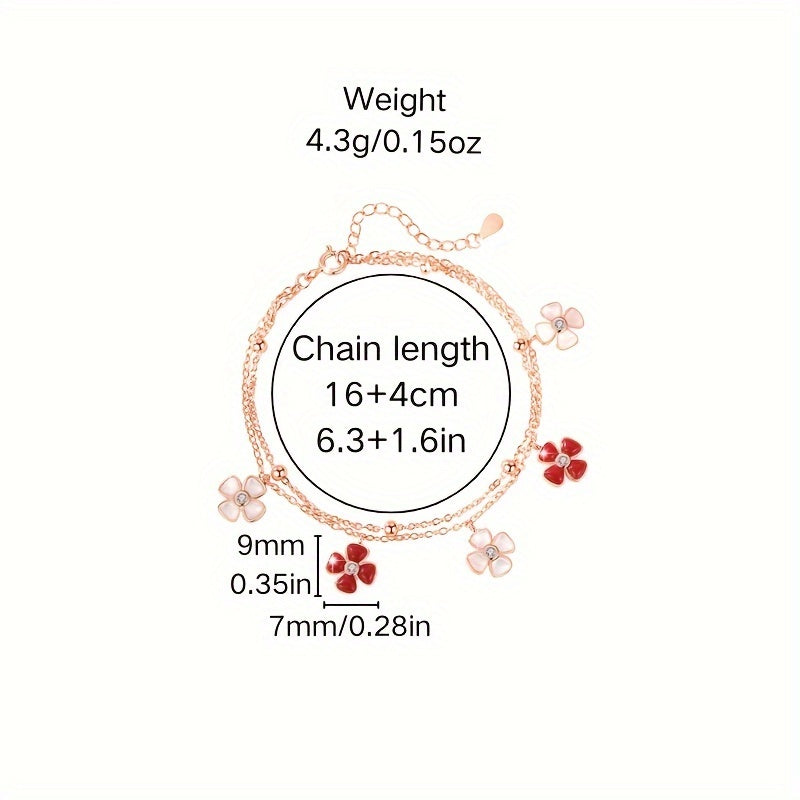 This stylish bracelet features a lucky four leaf clover design with a rose plated shell pendant adorned with synthetic zirconia. Perfect gift for Mother's birthday or everyday wear.