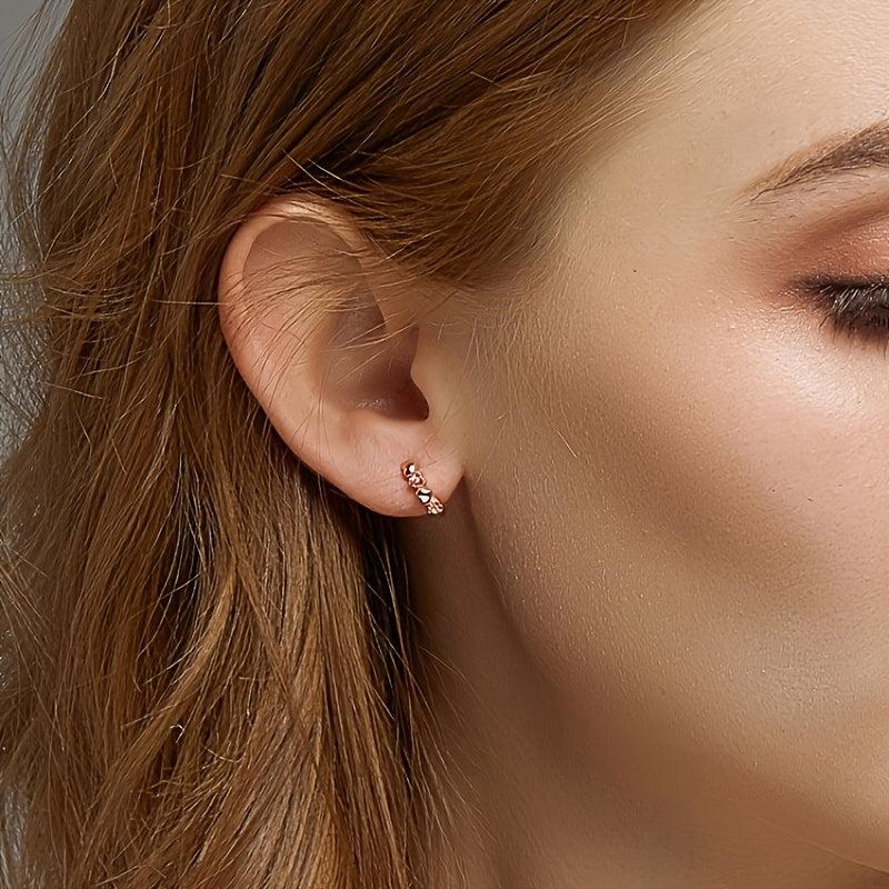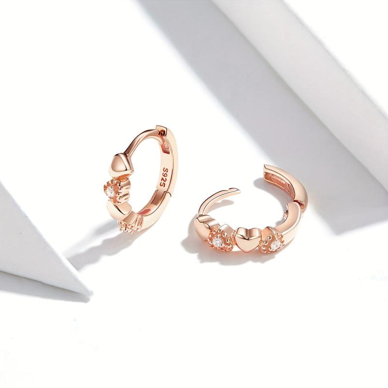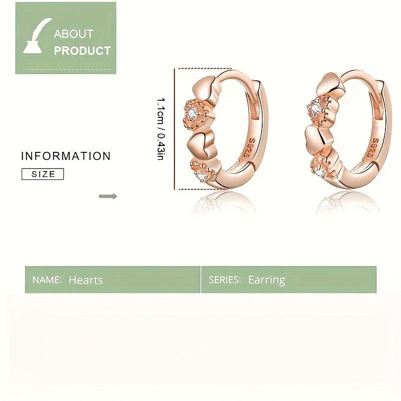 Elegant heart-shaped stud earrings crafted from 925 sterling silver and adorned with sparkling zirconia stones. These earrings are plated in luxurious rose gold for a touch of glamour.