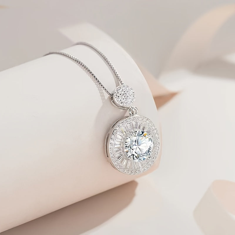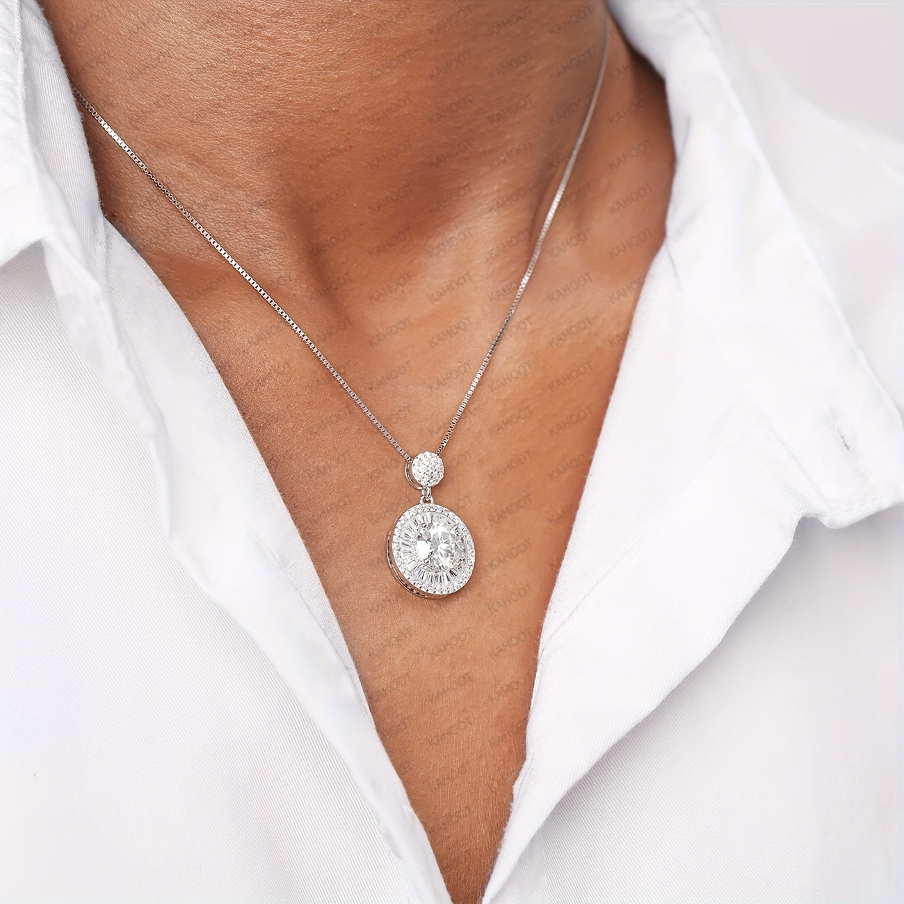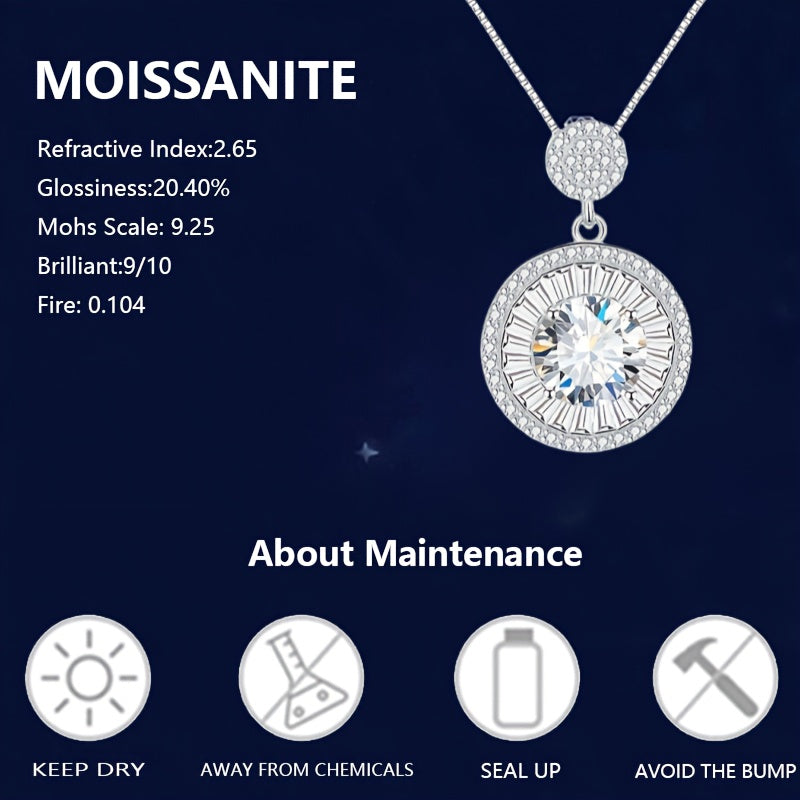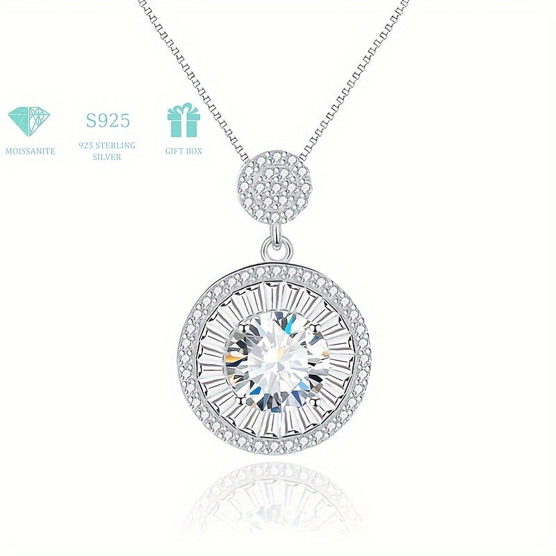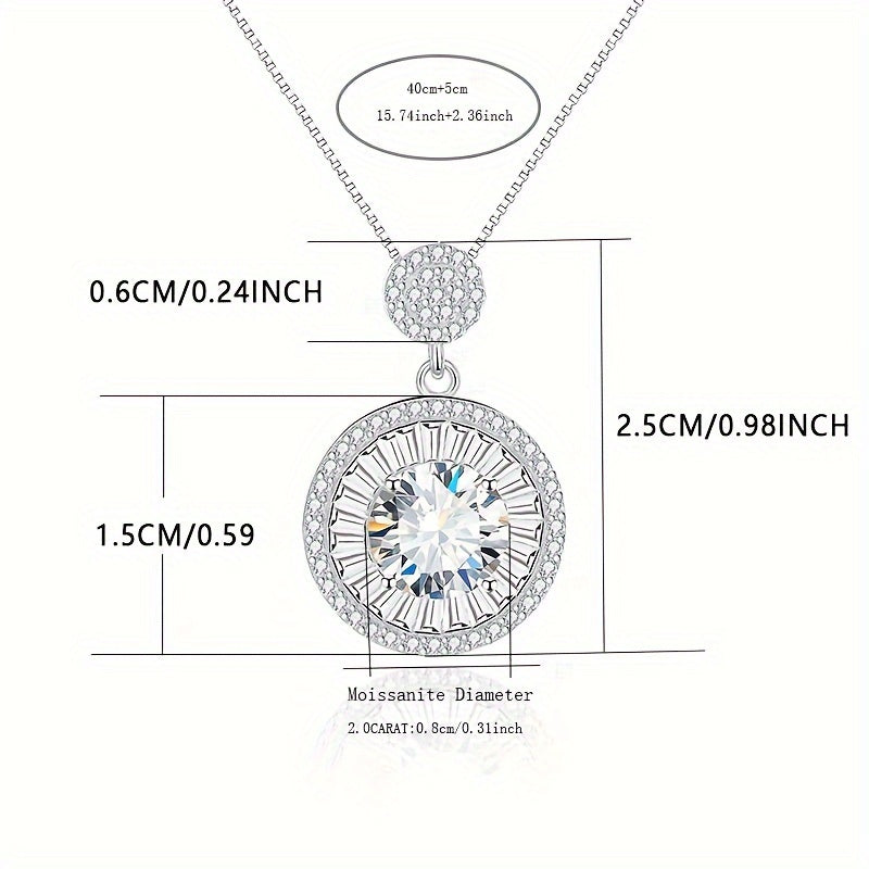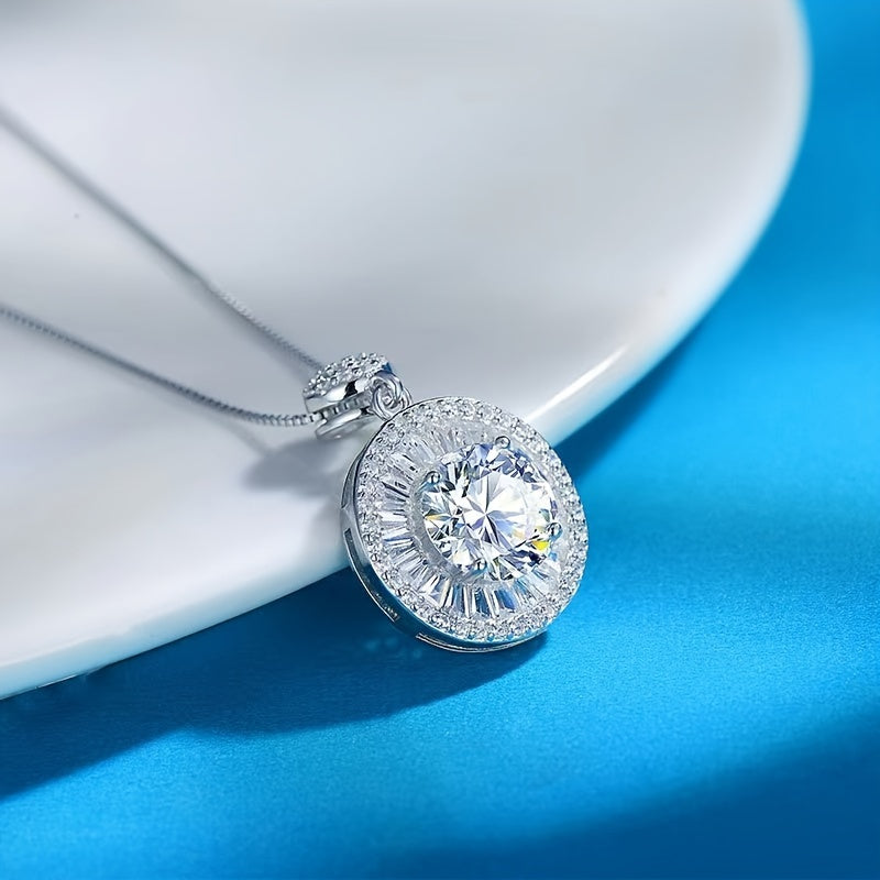 Elegant and eye-catching, this pendant necklace features a 2ct round Moissanite stone set in 925 sterling silver. Perfect for any occasion, it makes a great gift for birthdays, anniversaries, Christmas, or New Year.