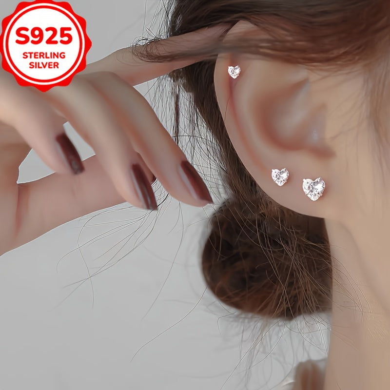 These minimalist stud earrings feature a round bead design adorned with sparkling zirconia stones. They are crafted in high-quality sterling silver and secured with a screw buckle closure.