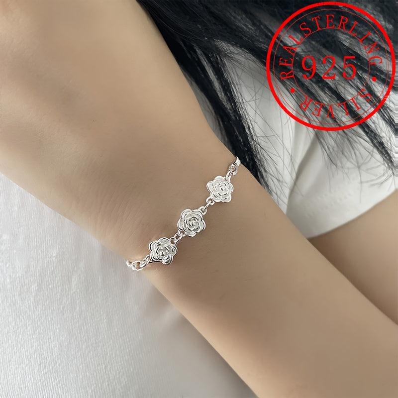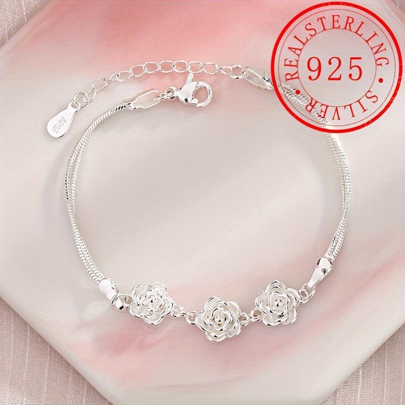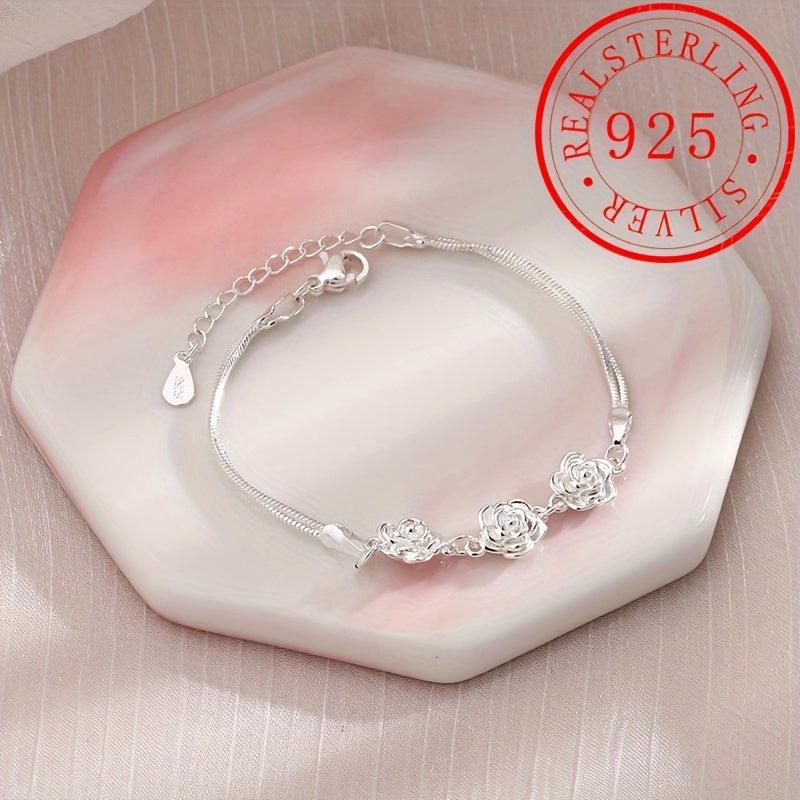 This stunning S925 silver bracelet features a three-dimensional rose design, symbolizing grace and beauty. The double layer adds a touch of elegance, perfect for those who appreciate the beauty of nature. Sweet Camellia fragrance wind hand ornament.