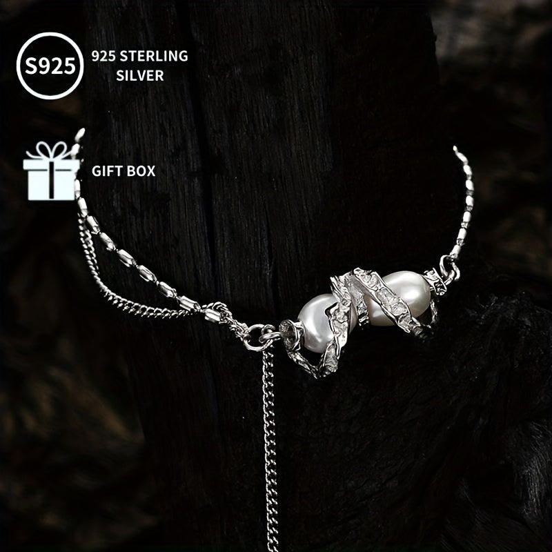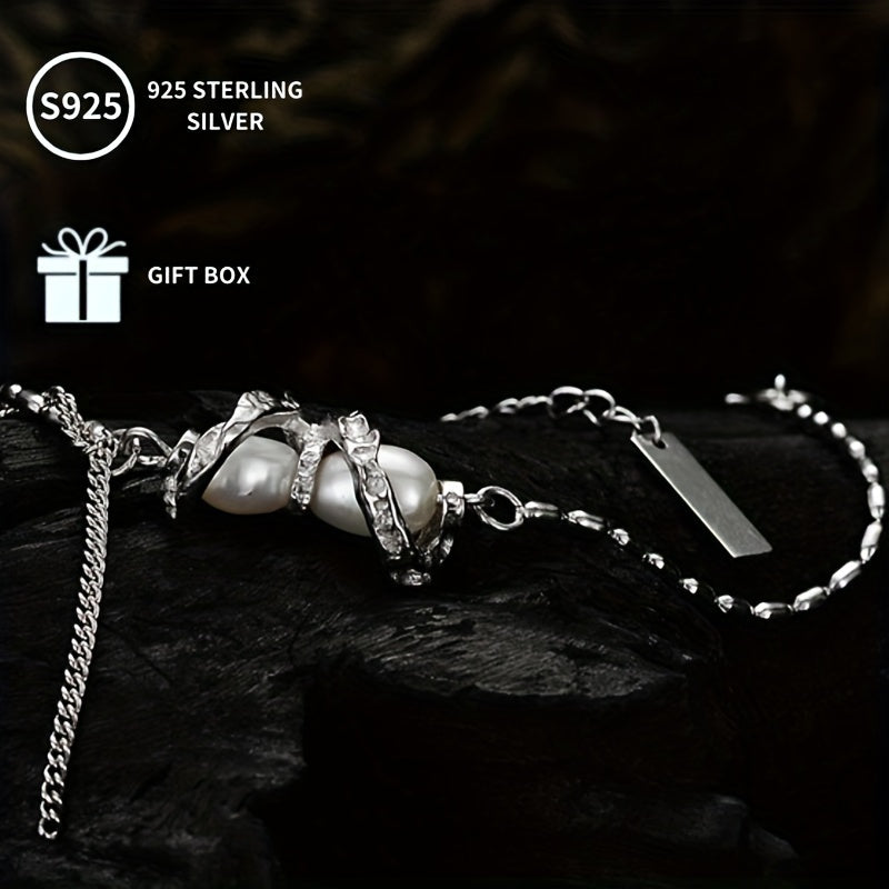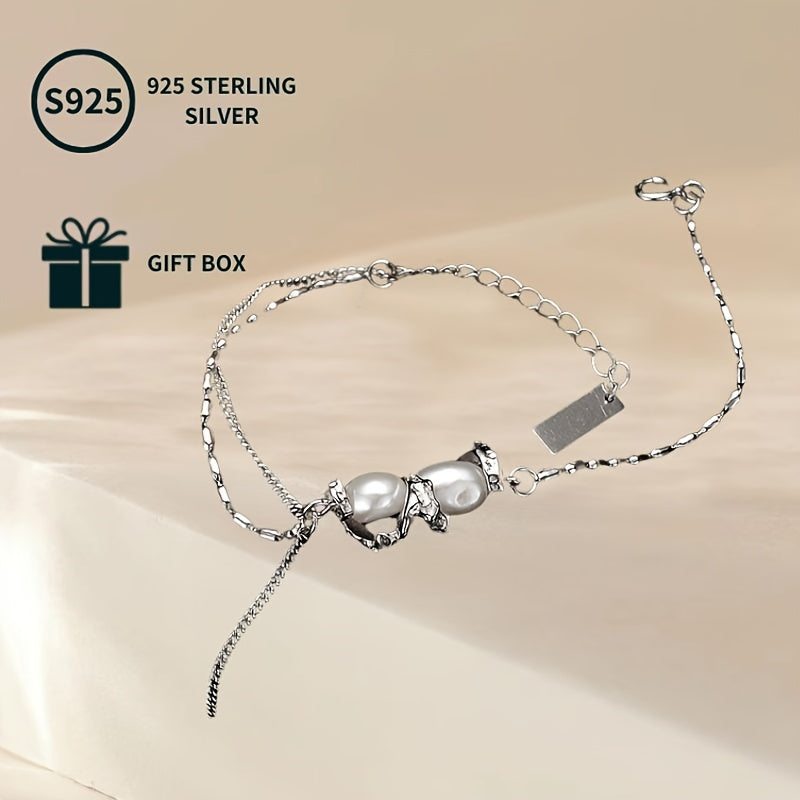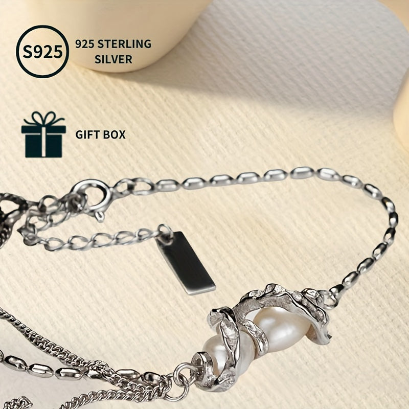 This stunning bracelet is made of S925 sterling silver with freshwater pearls. It is a perfect romantic gift for him. The golden plating adds a touch of luxury. The assorted headpieces give it a unique and stylish look. Natural defects are non-issues, making this bracelet a perfect accessory.