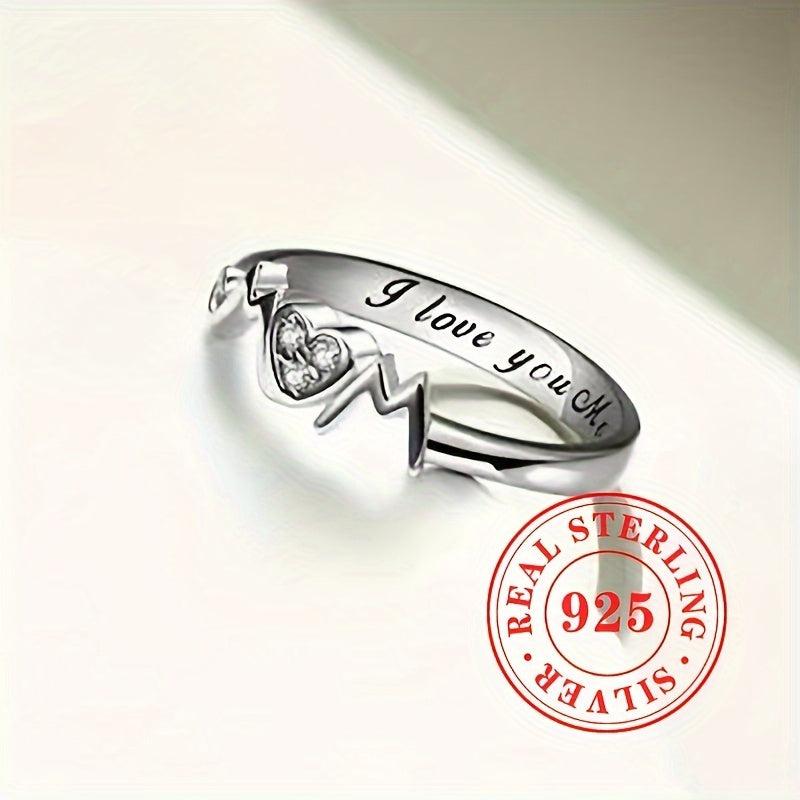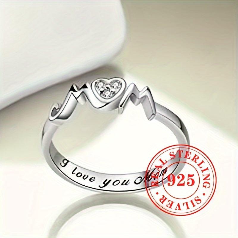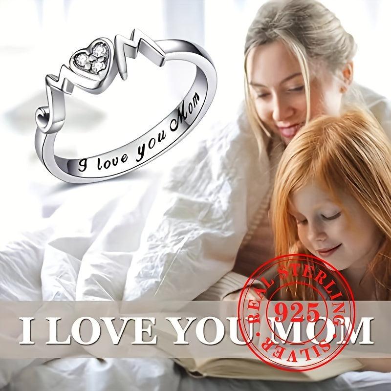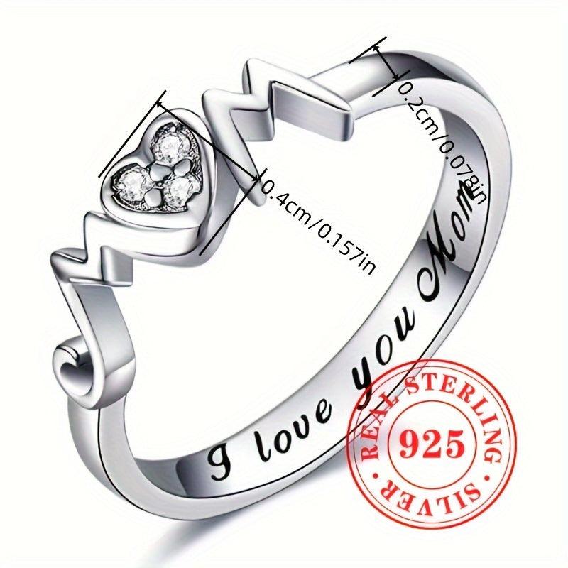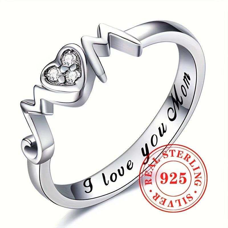 This elegant ring features a heart-shaped zirconia stone with the letters 'MOM' engraved on it. A perfect gift for mothers to show appreciation.