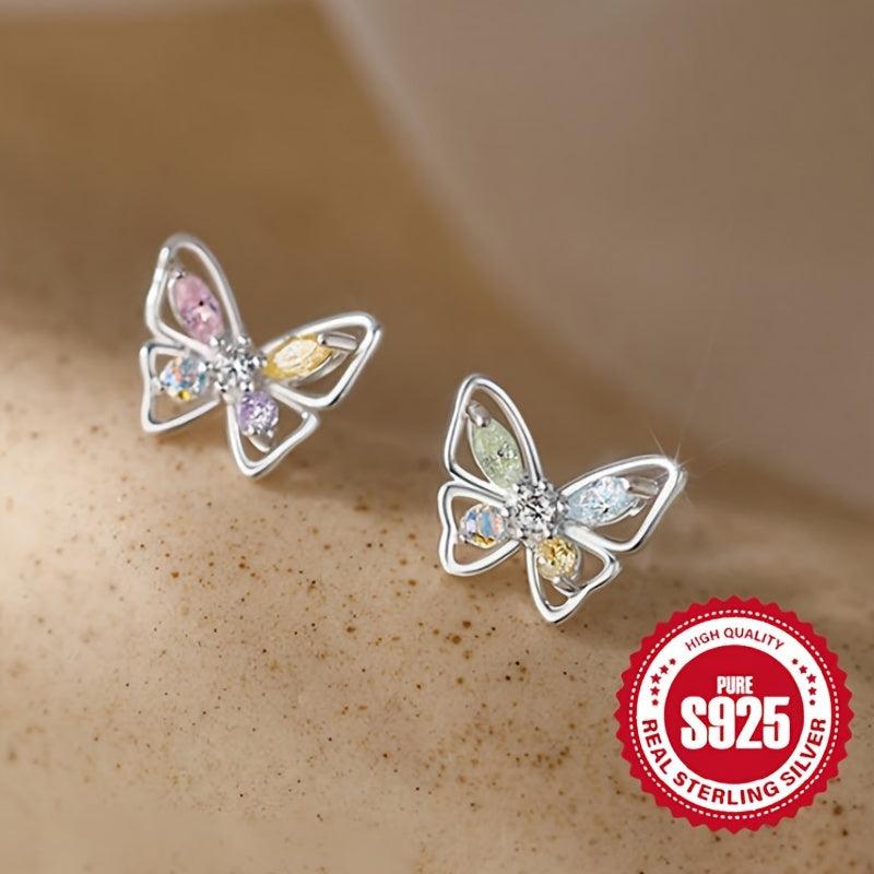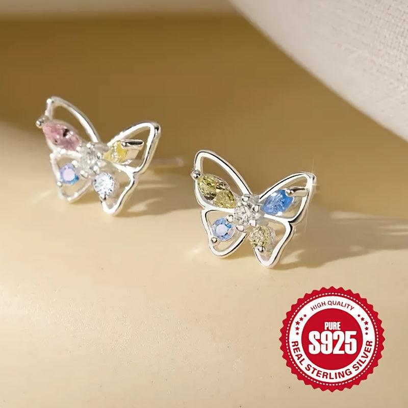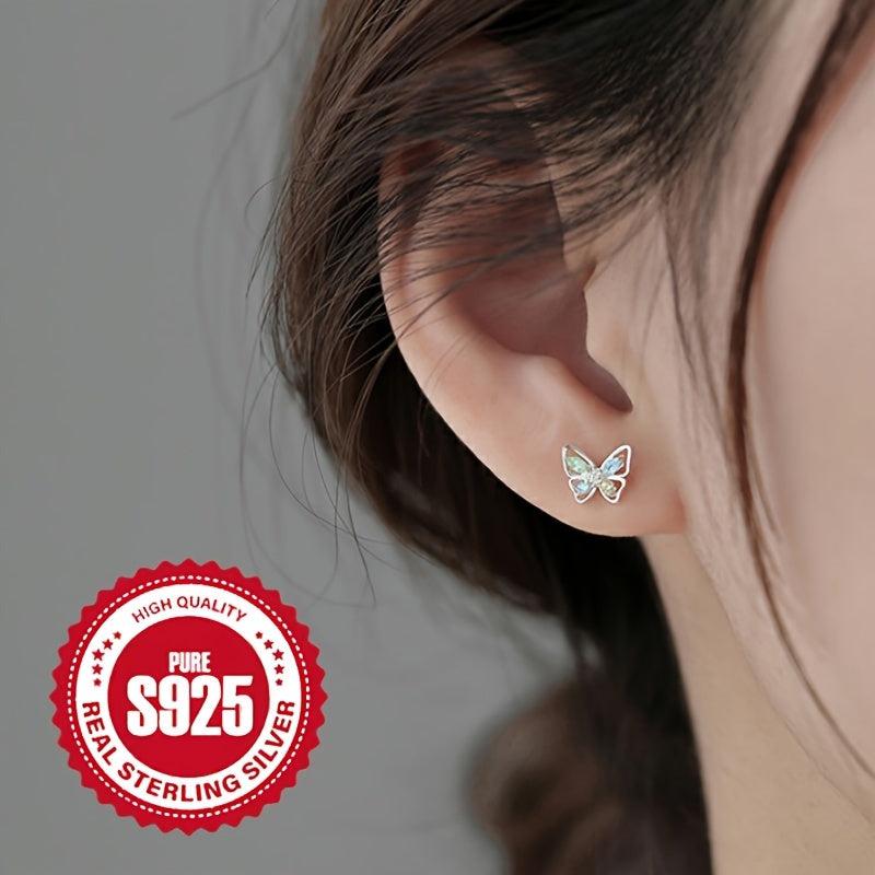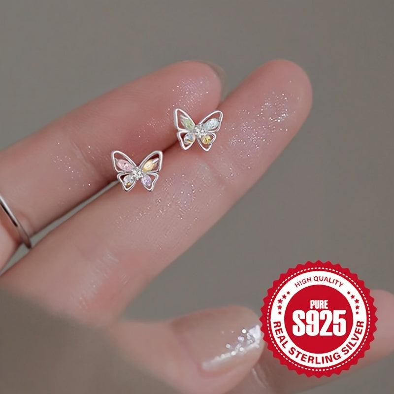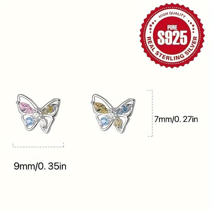 These butterfly stud earrings are made of hypoallergenic S925 sterling silver featuring synthetic cubic zirconia. Perfect for daily wear or special occasions like Valentine's Day.