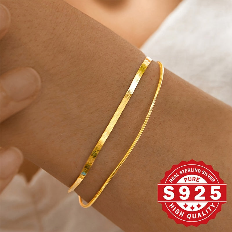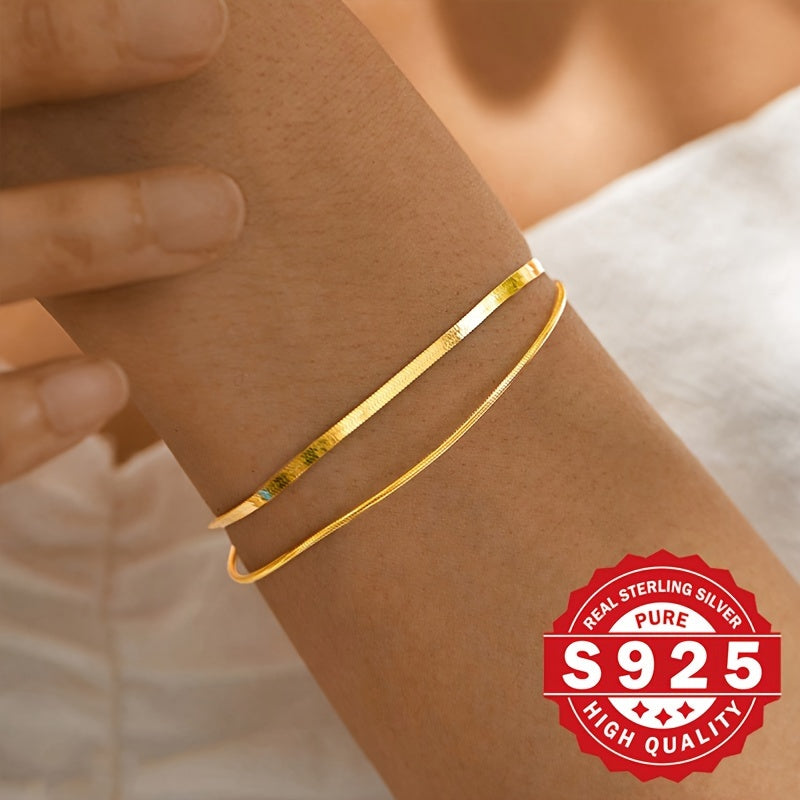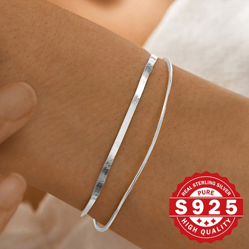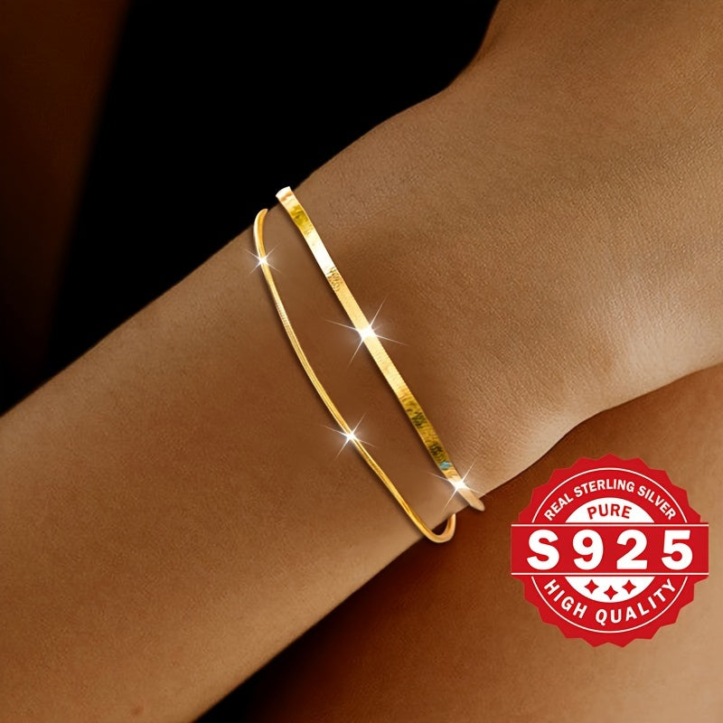 Elegantly designed women's bracelet made of high-quality S925 sterling silver featuring a stylish double layer with a unique blade and round snake pattern. This bracelet has a metallic feel that adds a touch of sophistication to any outfit.