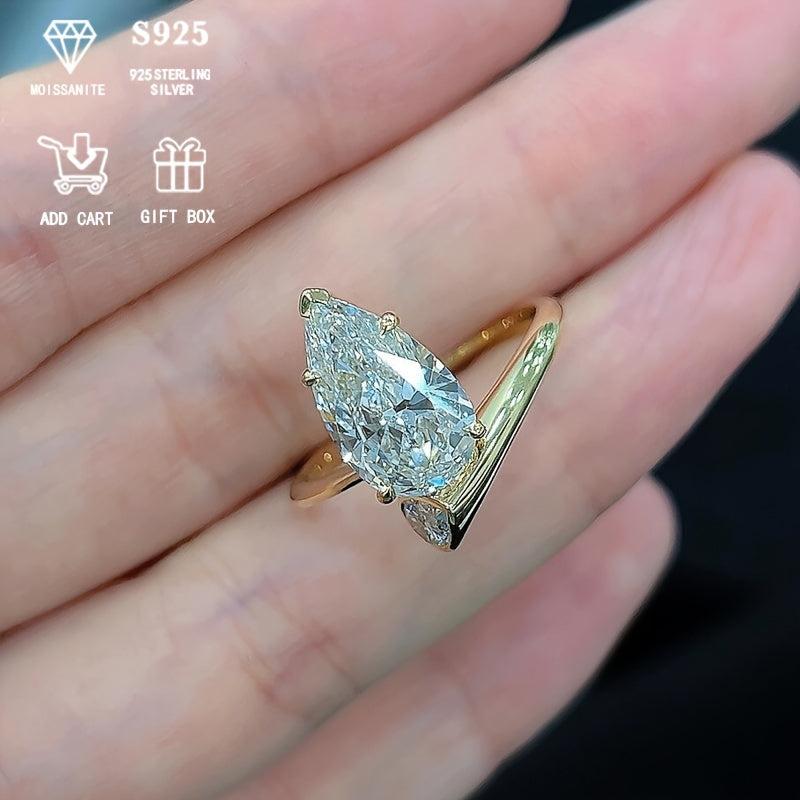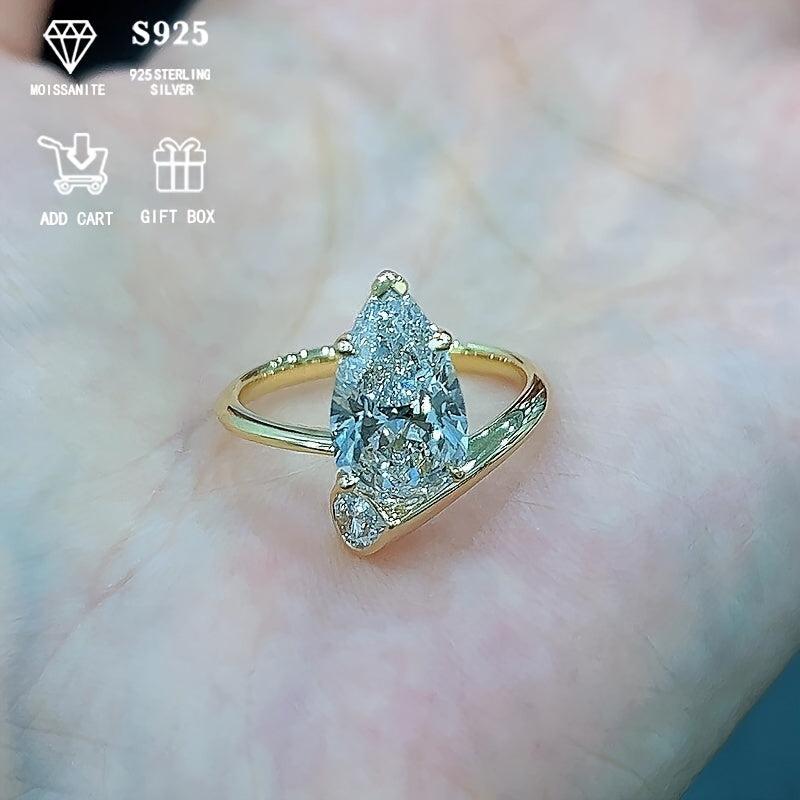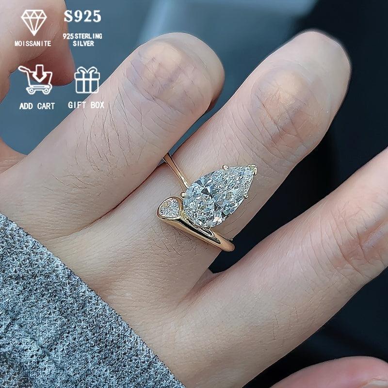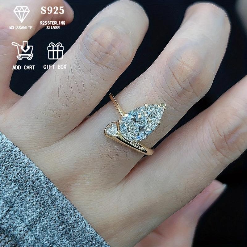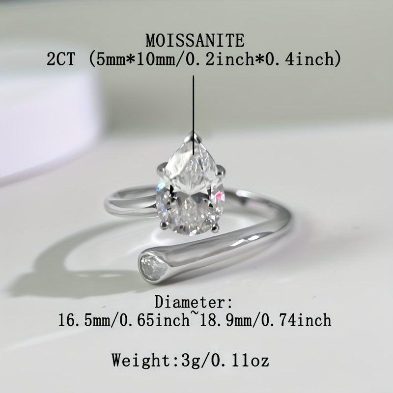 Timeless and low-allergic 925 sterling silver ring with 2ct marquise moissanite. Perfect for weddings, anniversaries, or as a gift.