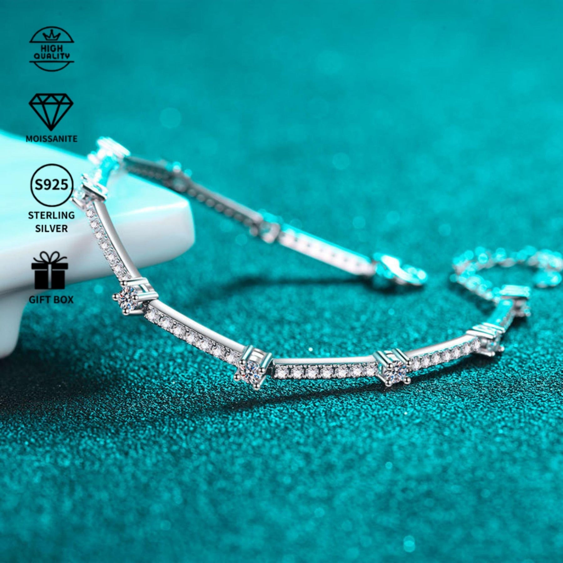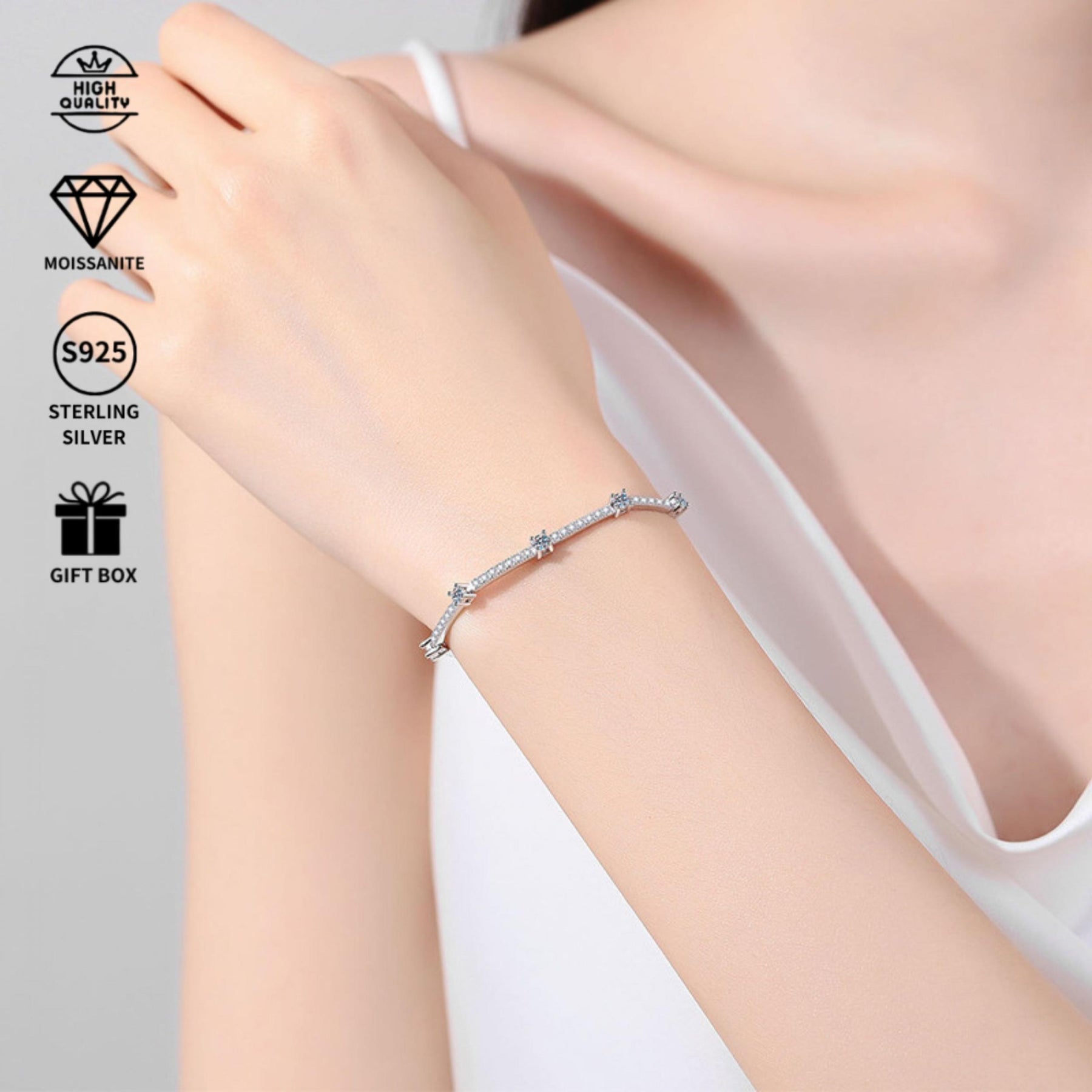 This stunning S925 sterling silver set features a total of 1.67 carats of dazzling moissanite. It makes a great gift for Thanksgiving, Halloween, or an anniversary. Comes with a gift box.